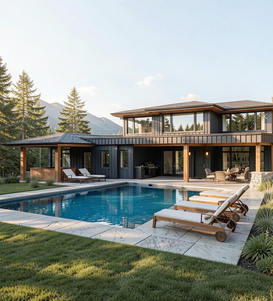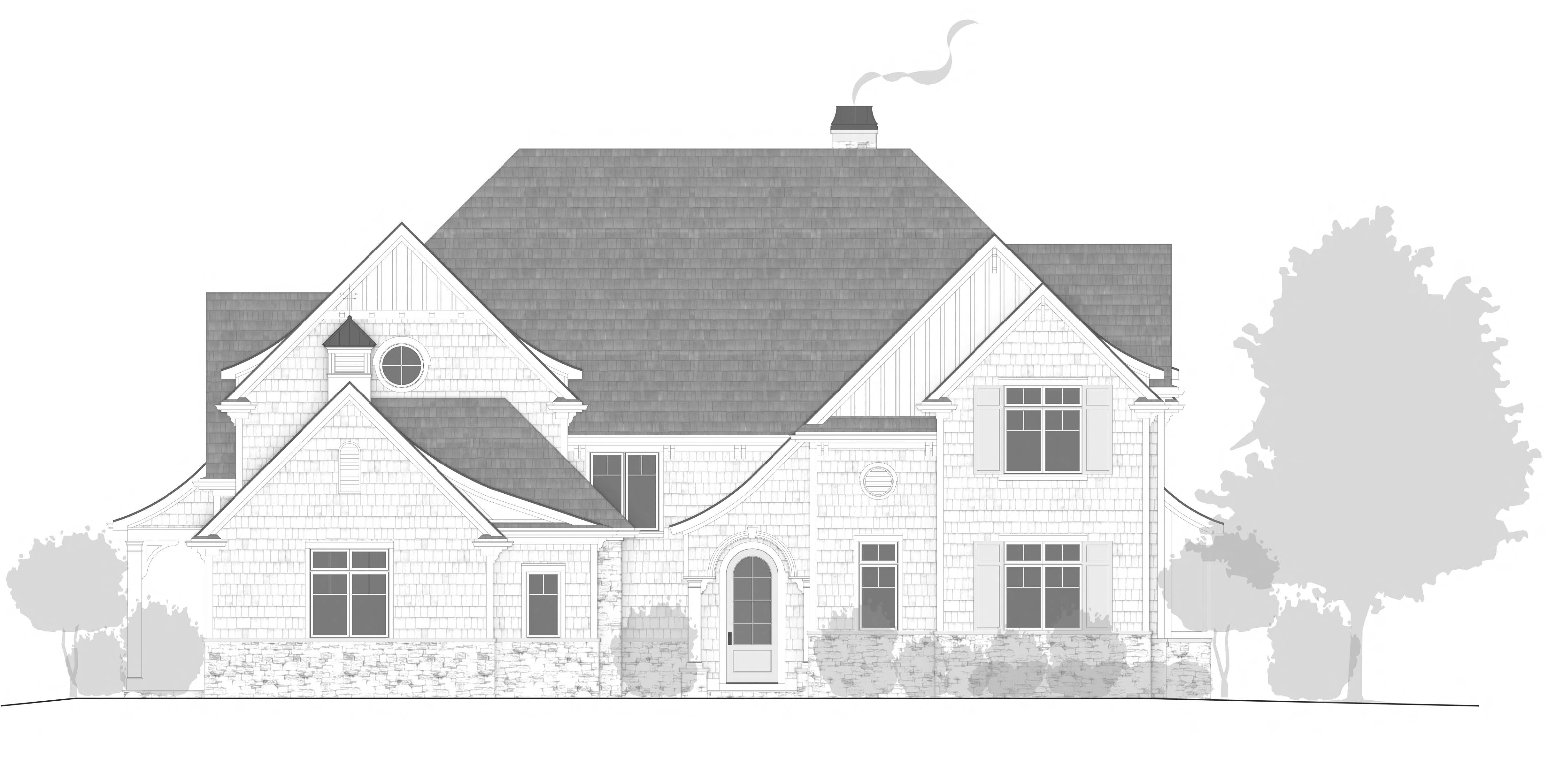 convert this floor plan into a realistic isometric 3d view of a full house show the space from an elevated angle with furniture walls and details visible this is a lake home which will be in the background the shake material will be a grey blue color with white accents use the same furniture as shows on the plan do not change the orientation of the floorplan