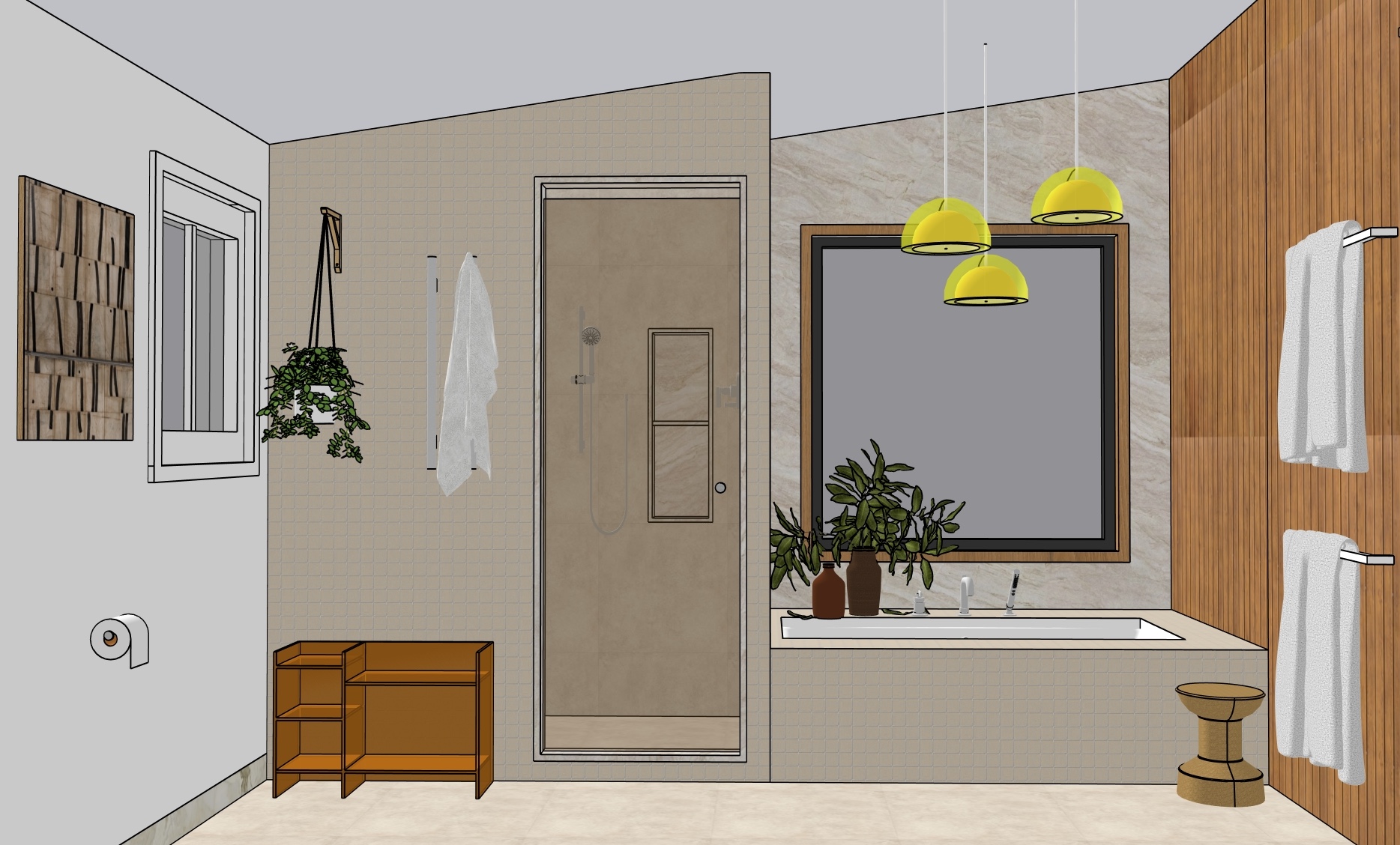 add white paint to ceiling add led light to shower niche put a view of a garden through the window