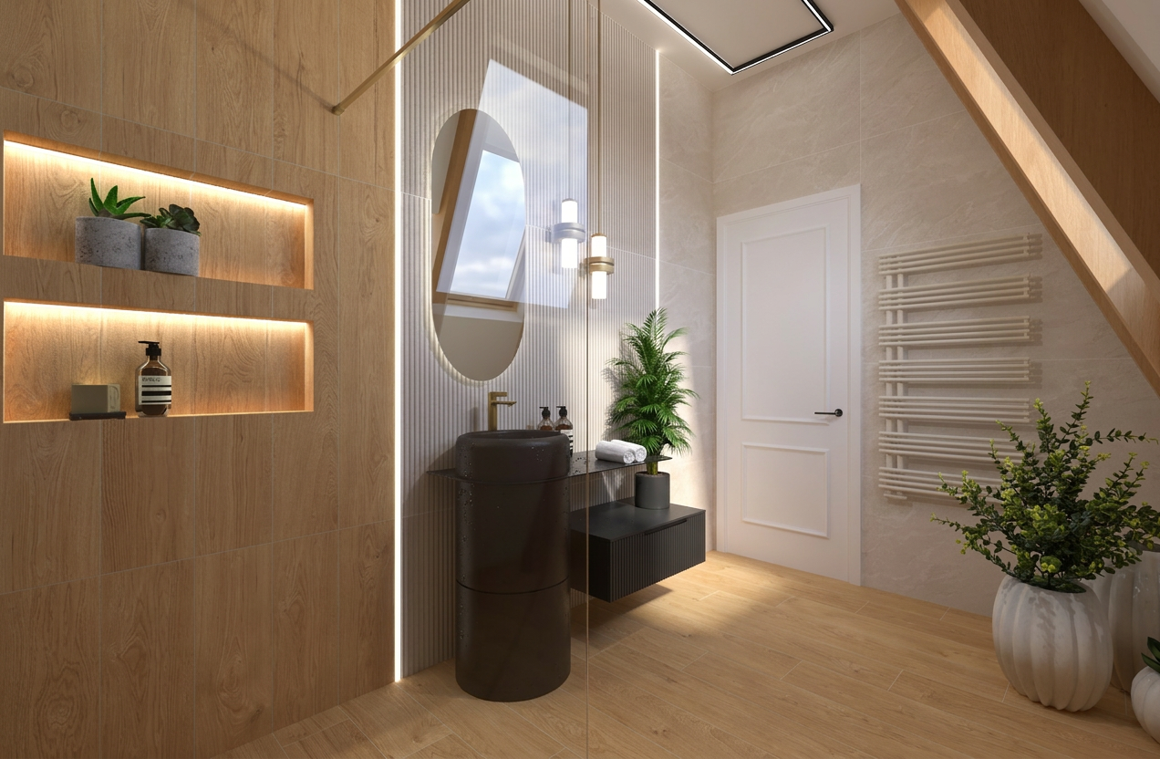 cozy luxurious television room place 5 design objects on the shelves make the fireplace look photorealistic