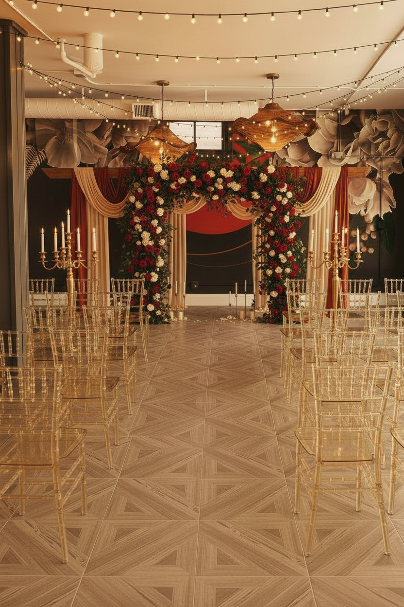 sprinkle blush colored flower petals that trail down the aisle