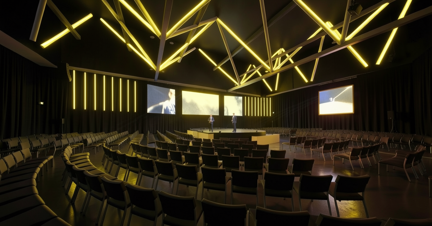 photorealistic luxury manager office scene photography hero camel brown fine weave fabric office chair black geometric armrest frame matte black five star base chair sharp and dominant in foreground 65 of frame background scene premium modern manager office full height glass curtain wall with sweeping city skyline afternoon golden light flooding through glass executive dark walnut desk with leather desk pad open macbook stacked design books white ceramic coffee cup floating dark walnut wall shelving behind desk architecture books small bronze sculpture award trophies dark charcoal micro cement accent wall left side people confident female executive mid 40s standing beside desk tailored charcoal blazer looking at tablet with focused expression second person young male assistant in navy suit standing at glass wall on phone slightly blurred third figure barely visible through glass partition outside team member walking past motion blur plants dramatic large bird of paradise in matte black concrete planter right corner wide bold leaves catching window backlight small monstera on desk corner in white ceramic pot trailing pothos from floating shelf tall slender olive tree left side near glass wall lighting golden afternoon sun from glass wall warm amber light pooling on camel fabric revealing every fiber of fine tweed weave executive figure backlit against city glow recessed ceiling downlights providing even fill color palette dark walnut camel chair city gold light charcoal deep green plants style bloomberg businessweek executive portrait 8k ultra hd chair sharp people add life and scale ar 16 9 style raw stylize 220 q 2 v 7