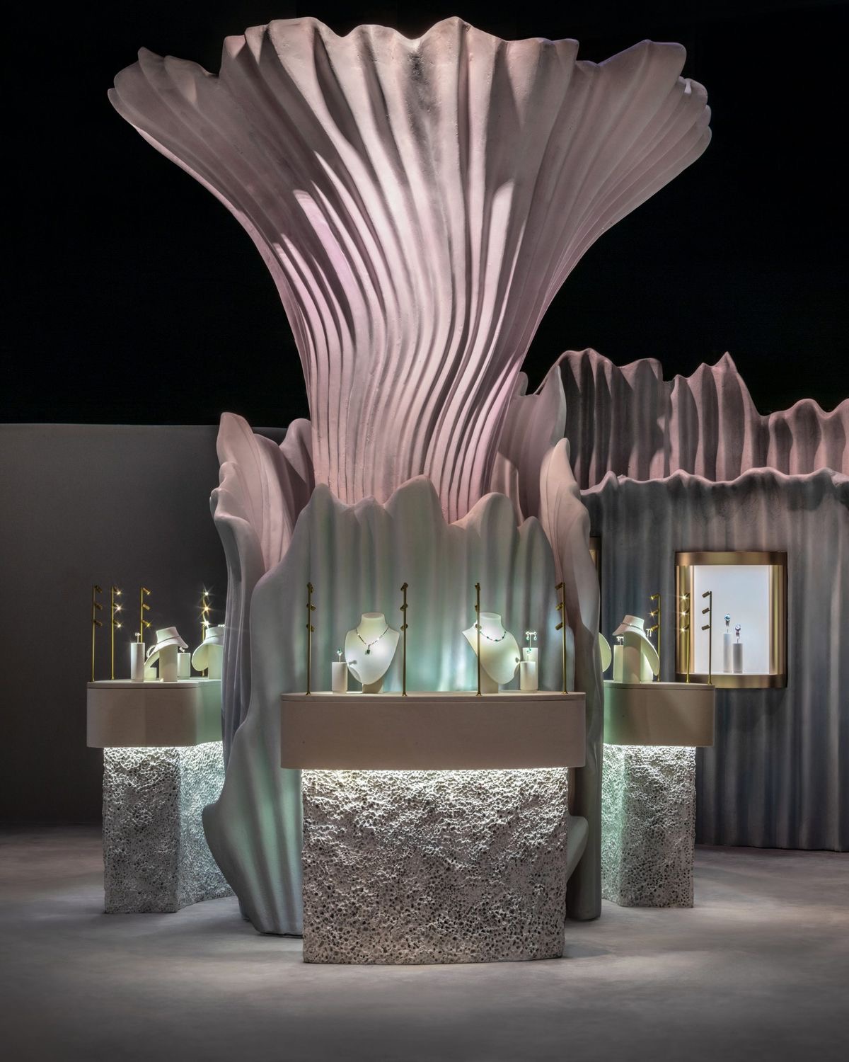 soft pastel architectural illustration hand drawn style art deco atmosphere brass tones warm light