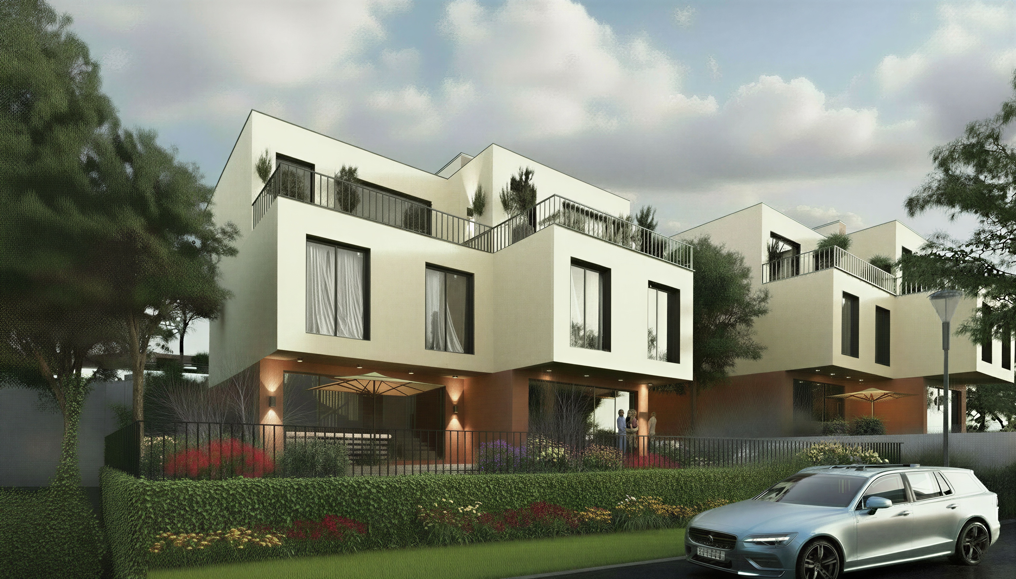 add sun light hitting the front of the villlas