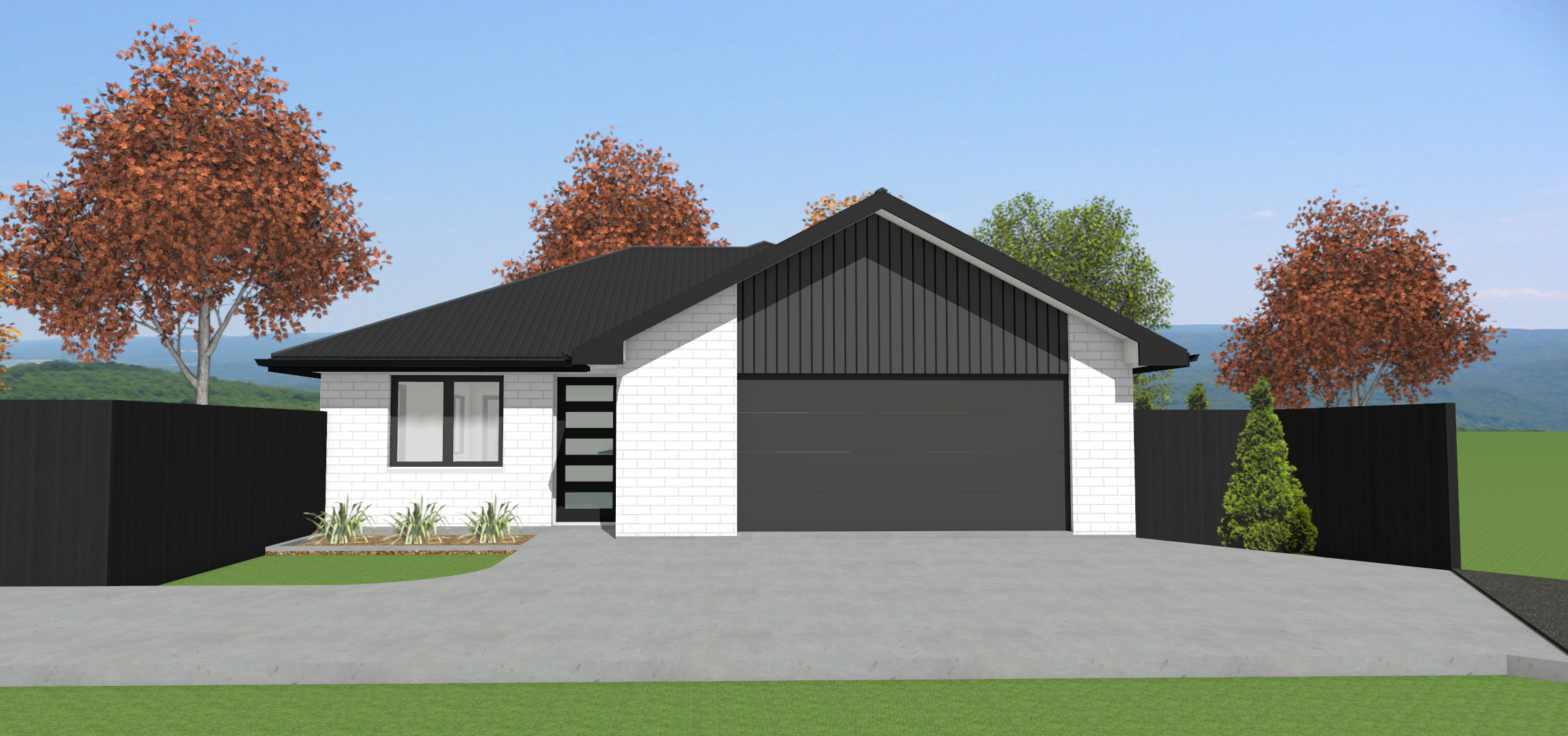 white brick black wood with a concrete driveway and fencing short grass ashburton new zealand