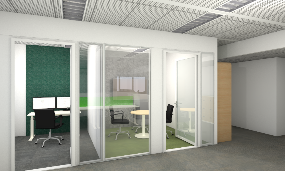 transform the provided office interior image into a high end photorealistic render with naturalistic atmosphere while keeping everything exactly the same position same proportions same seating same ceiling curves same wall finishes same floor finishes same materials same colors and same spatial configuration do not move or alter any objects geometry textures colors or furniture positions