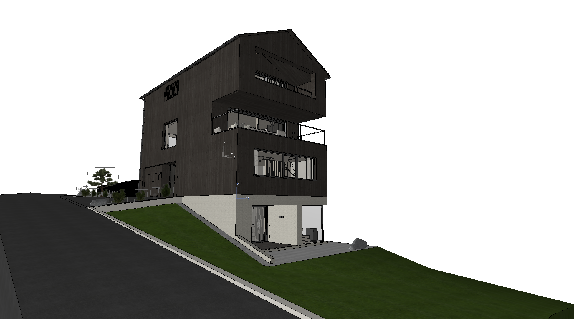 berglandschaft im hintergrund winterstimmung sonniger tag dunkle holzfassade keller in grauem putz