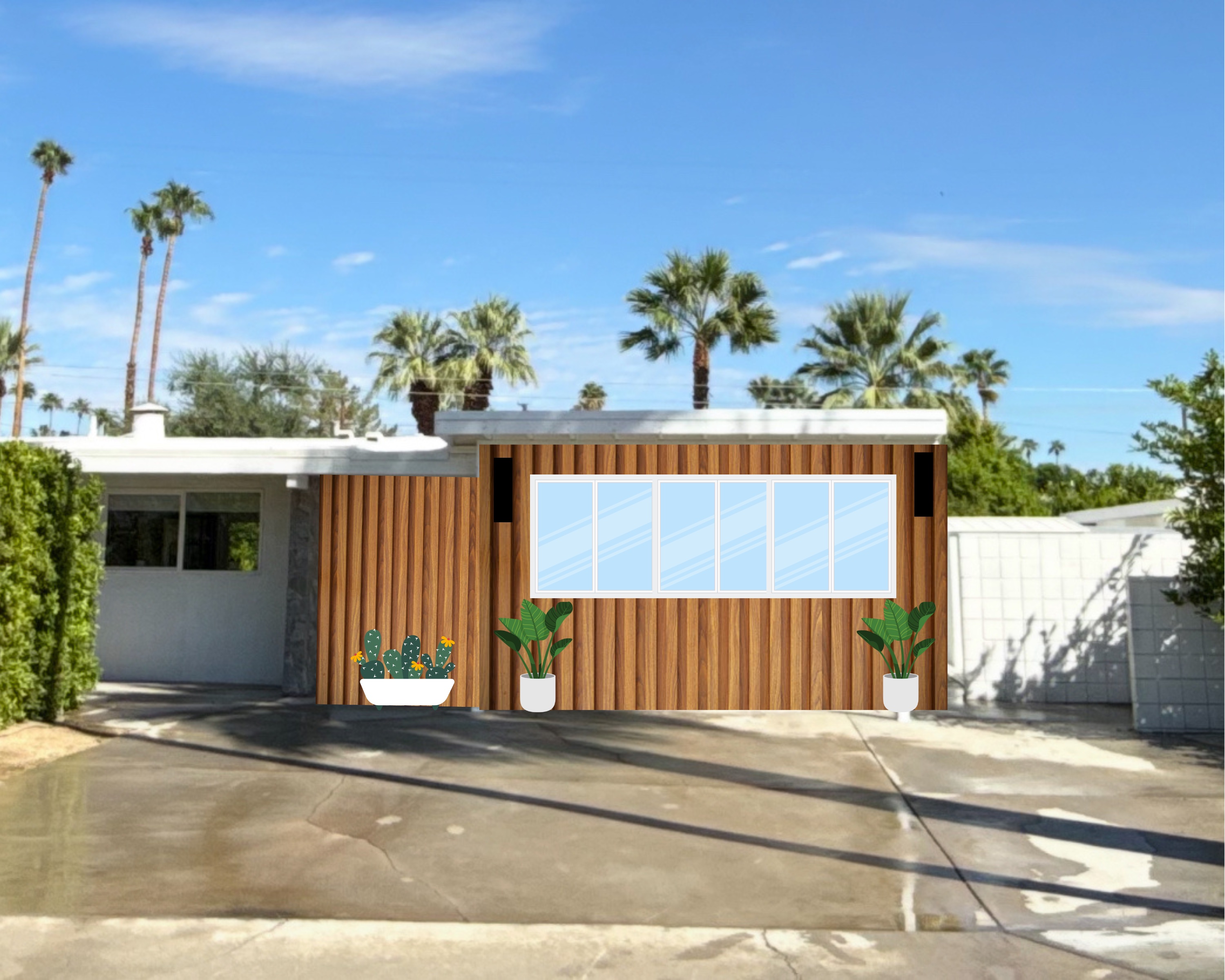 change wood walls to white stucco to match the rest of the house