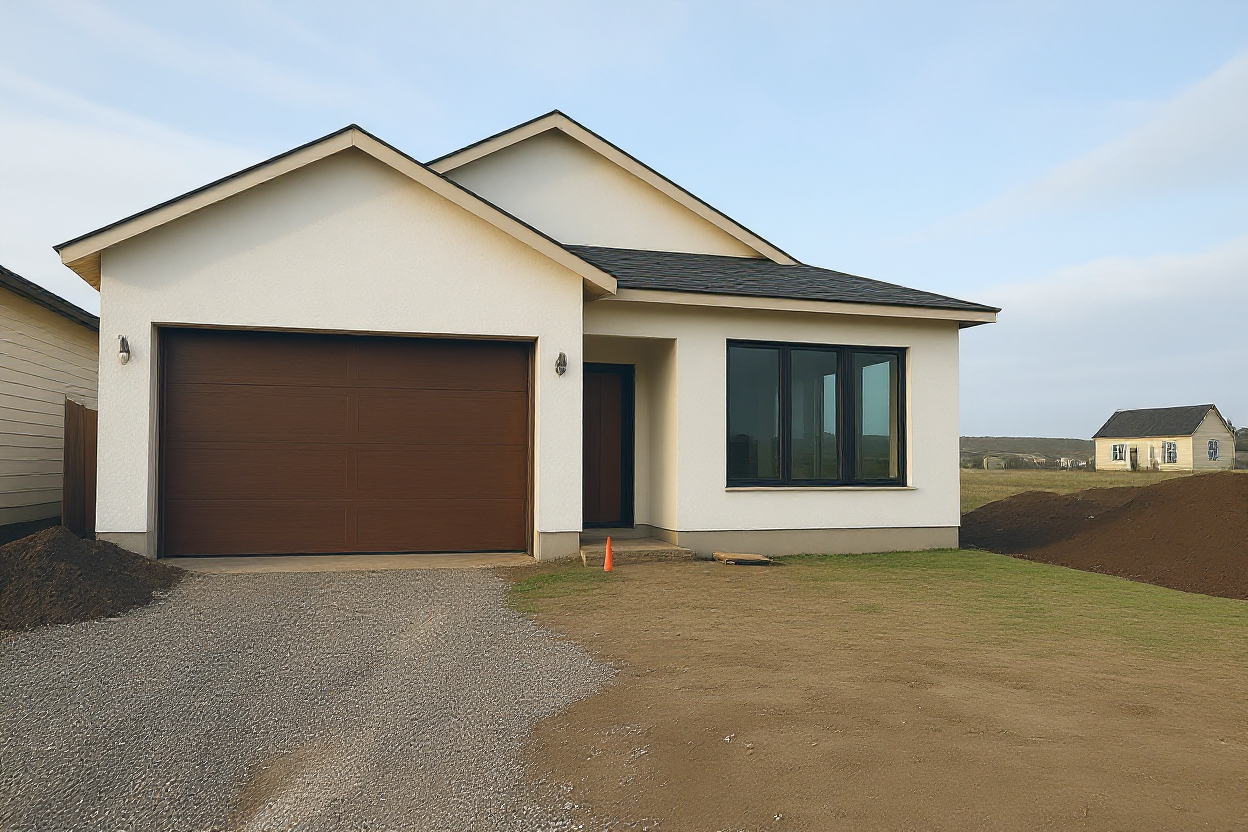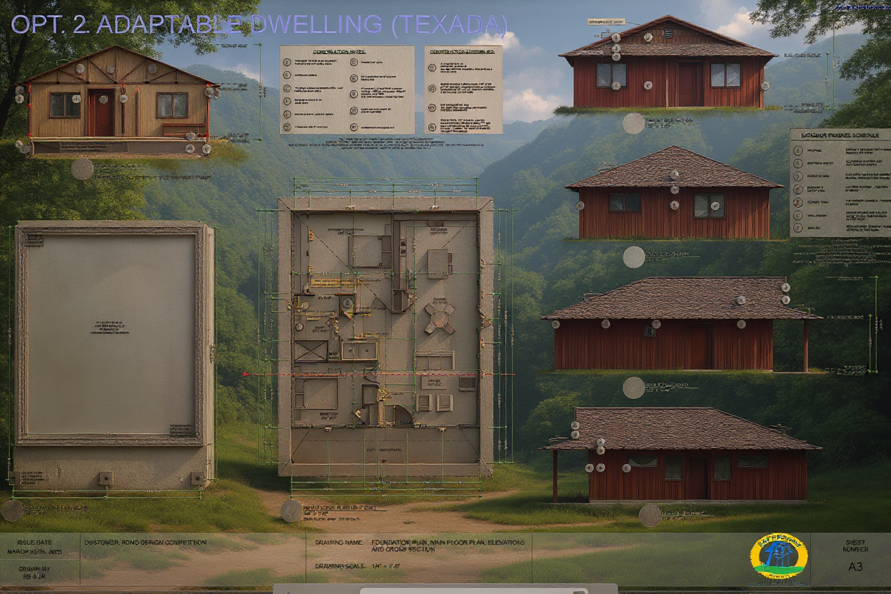 big house in the forest during morning close to noon metal roof black windows and dark wooden finishes