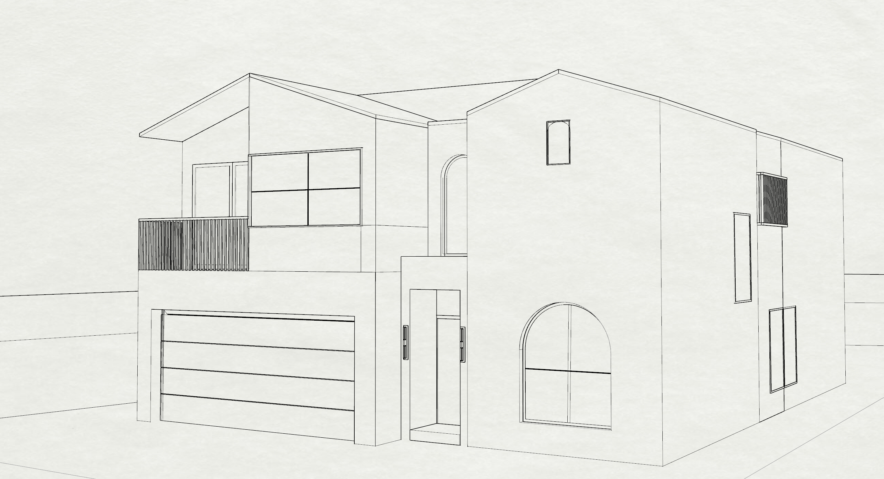 modernist exterior shot visualize a modern california spanish style exterior wall all white with red roof black metal window frame residential building with a contemporary design the building should have white stucco exterior walls large windows with reflective glass and wood trim and sleek black accents along the edges the atmosphere should be light and airy with clear blue skies and soft sunlight casting soft shadows the surrounding landscape should include lush green grass colorful flowering shrubs and tall deciduous trees with autumn colored leaves architecture