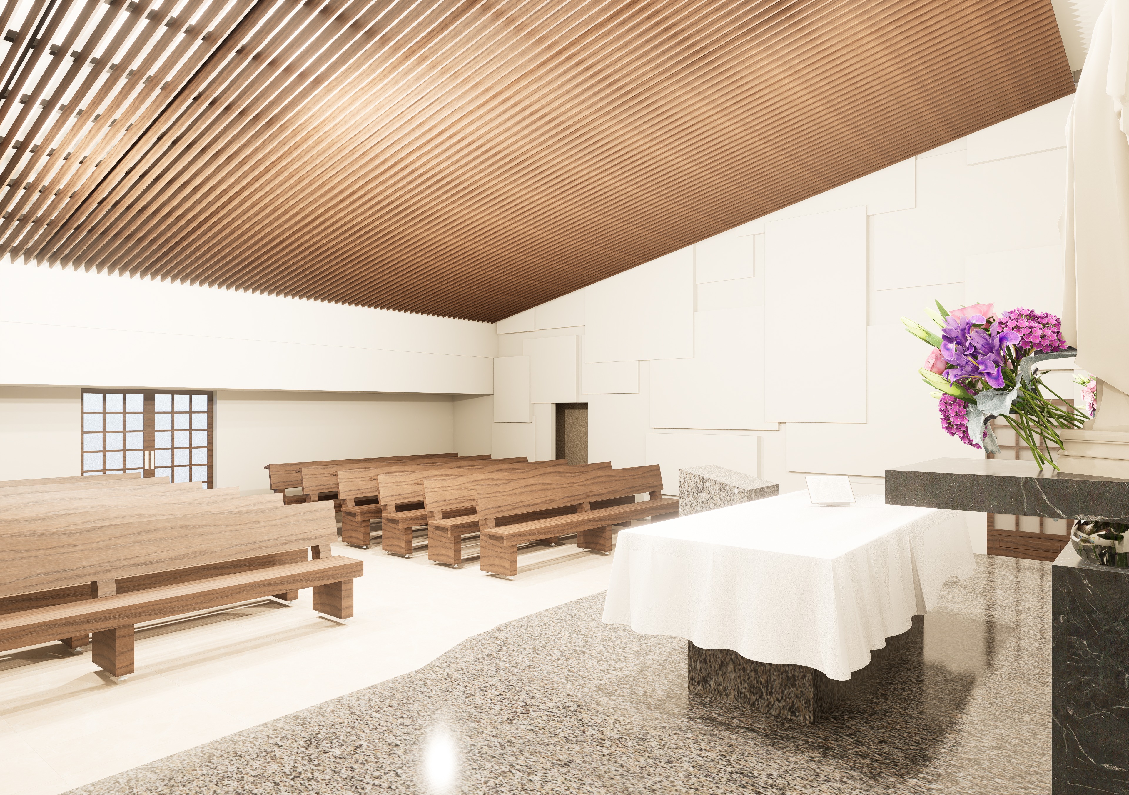 add realistc textures beam wood ceiling and benches