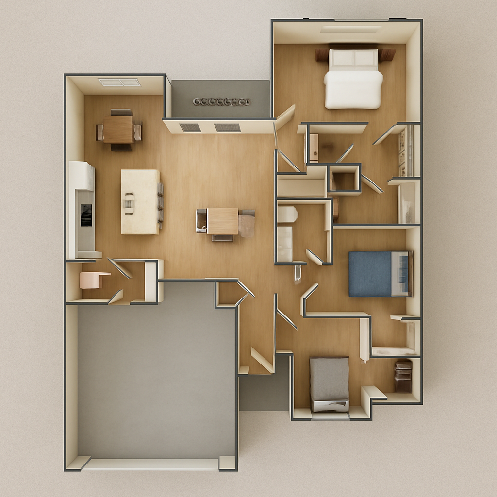 make as photorealistic as possible while keeping textures the same as selection professional landscaping in a lightly wooded scene with good lighting match materials
