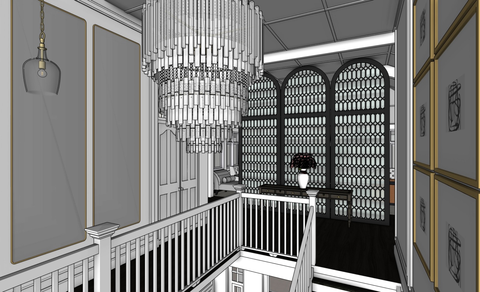 walls and moldings and trmmings in white the infills on the left wall is in mirror