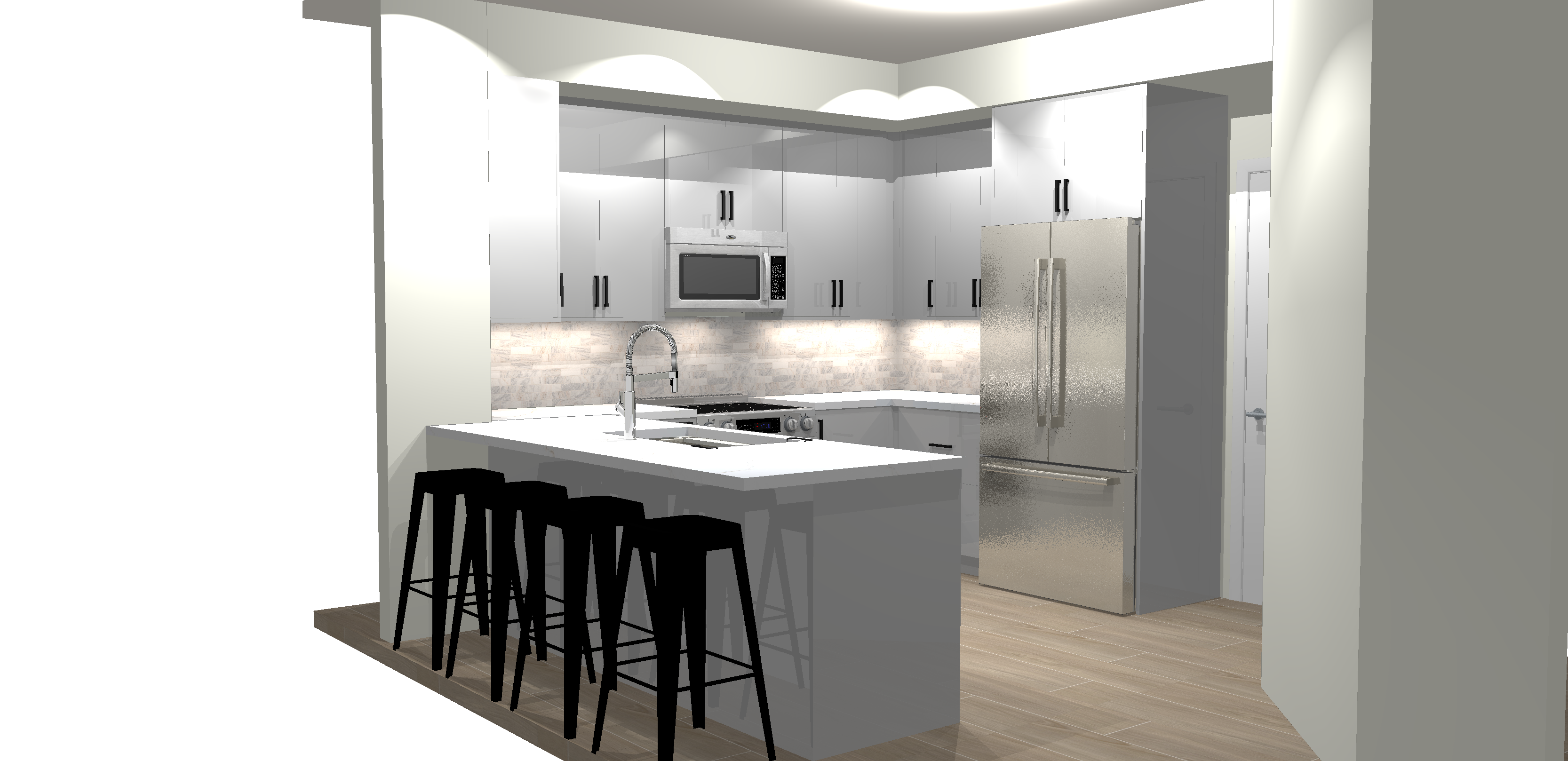 make it realistic kitchen dint change layout cabinets are high gloss white do not add any wall or background