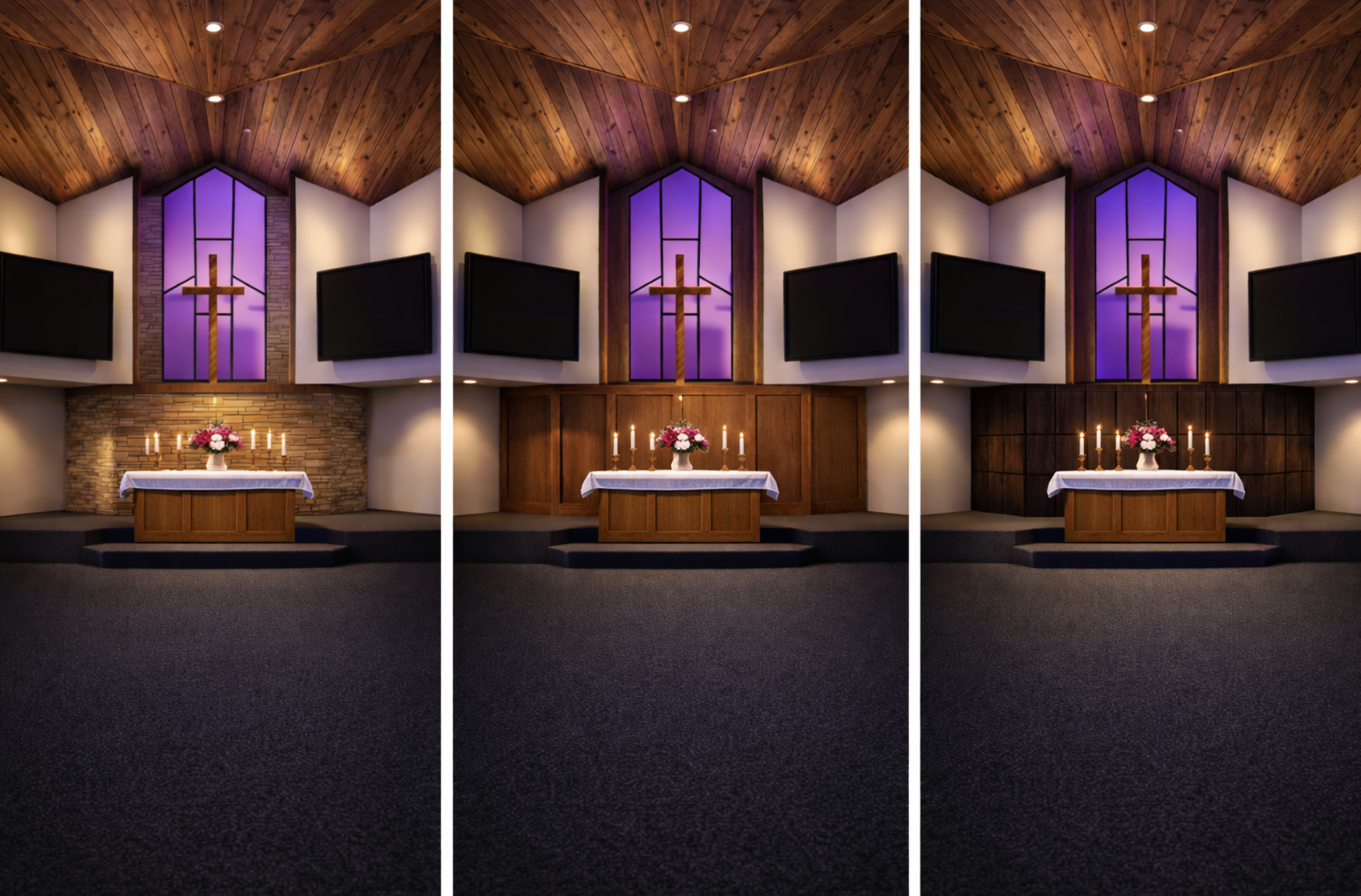 i need to change the stain glass window needs to bump forward and the have no wood around it run the draywall flasg to it all the way to the ceiling keep everything the exact same don t change a thing in the design
