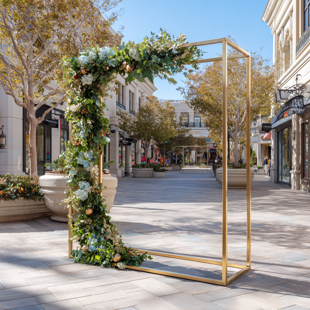 remove the garland decoration from the gold iron frame so that it is bare
