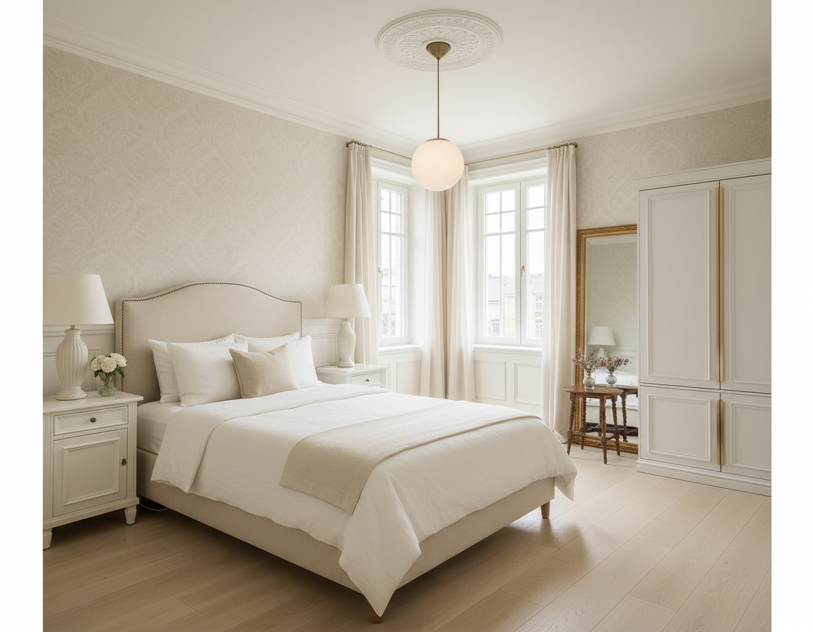 make an open kitchen and dining room 380 cealing with cealing rose and a lamp 240 windows paneling 160cm with beige wall above 1880 1920s vibe but with modern features