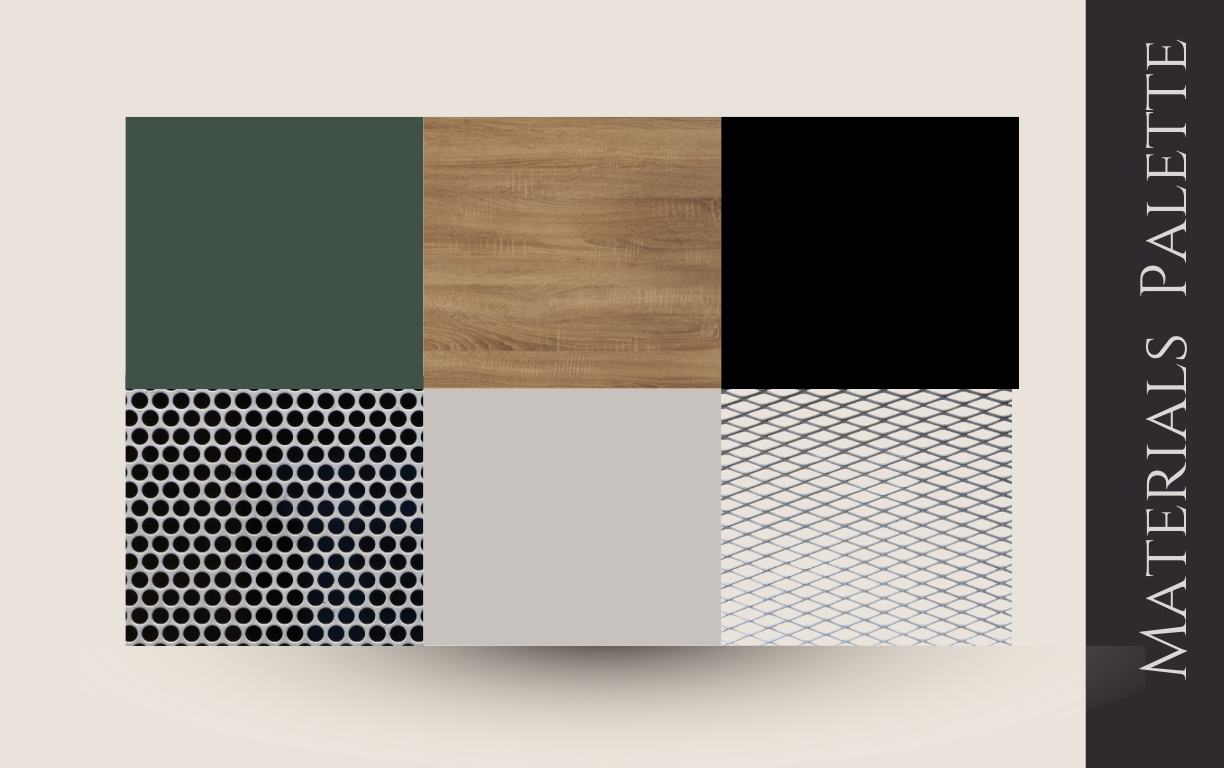 create a palette and materials mood board from this image