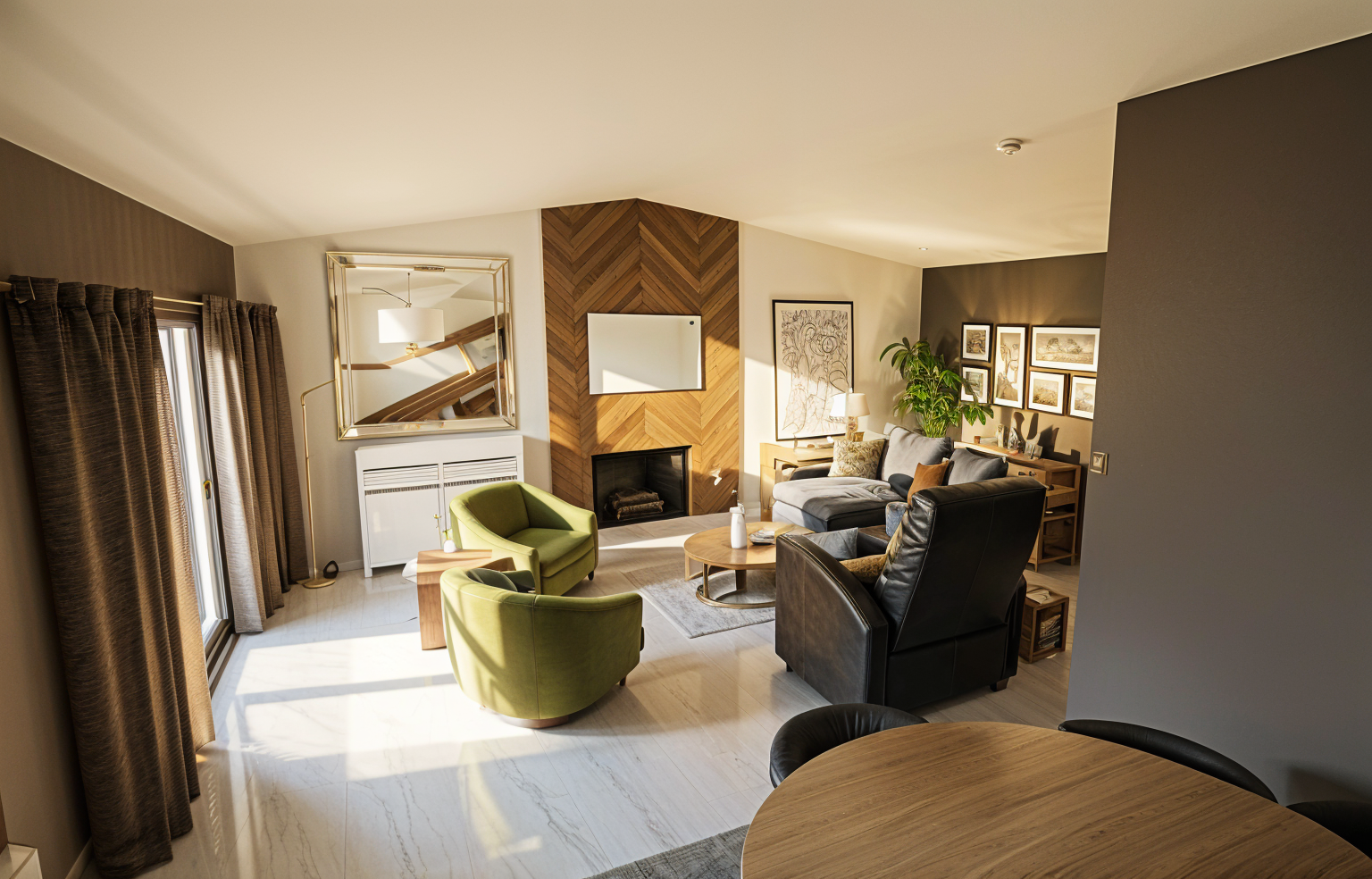render this in a photo realistic way keeping exact colors and textures making the room feel light and bright