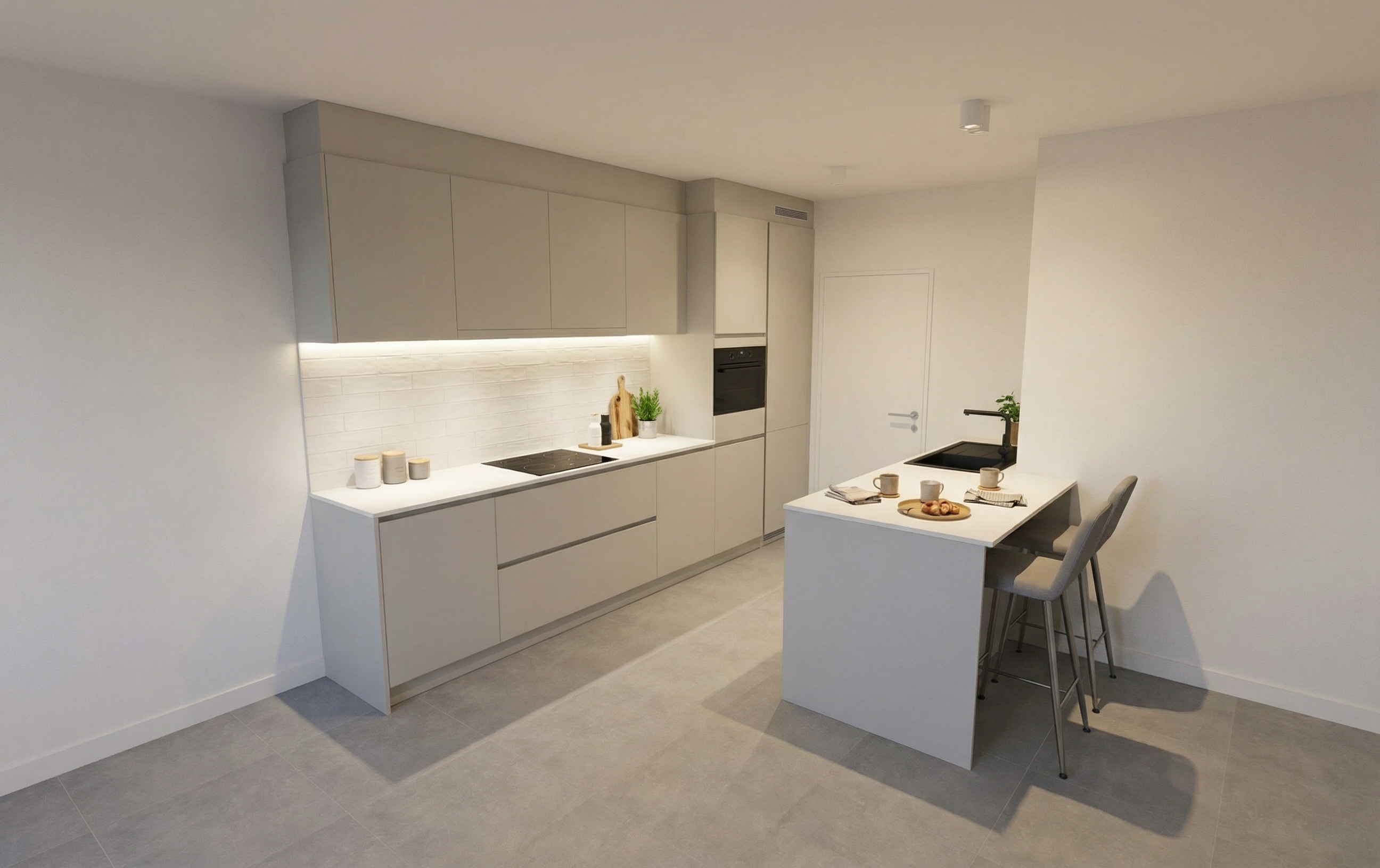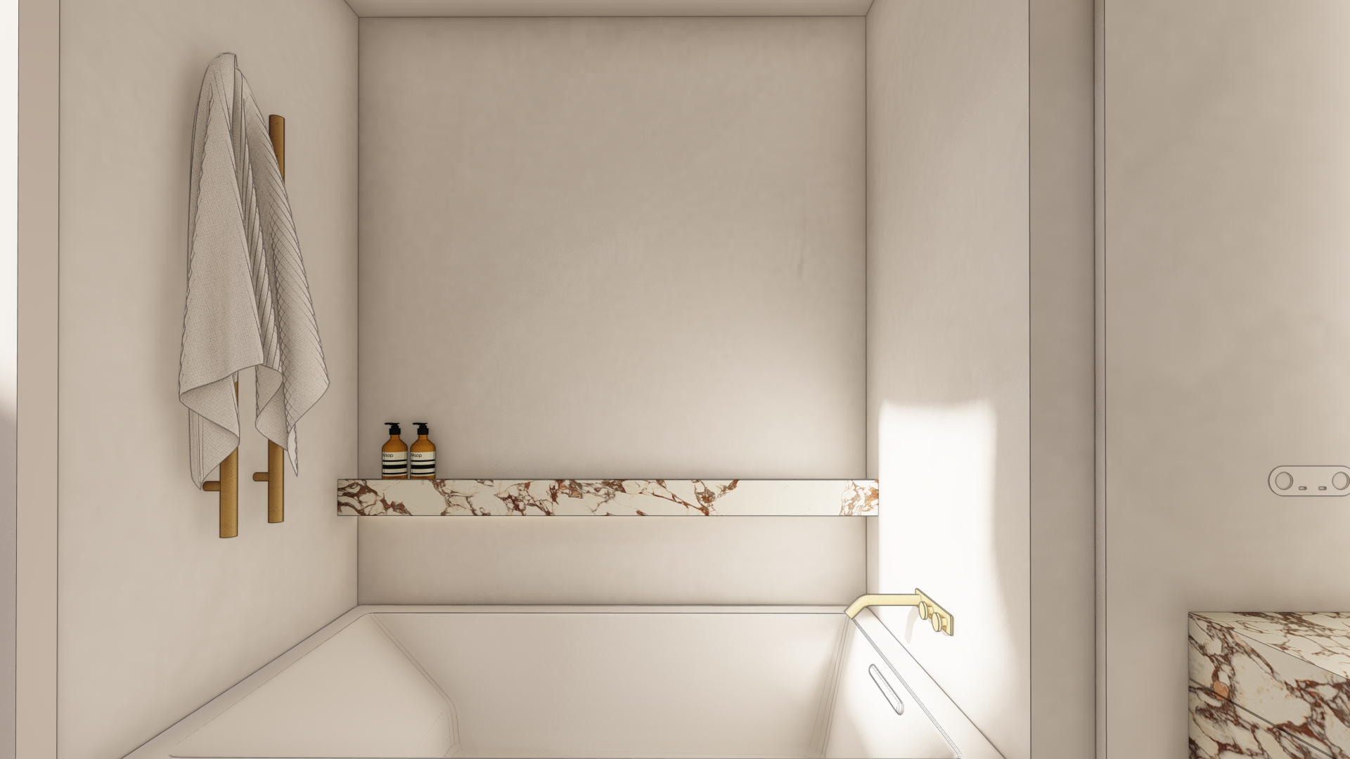 focus is on the marble cabinet finished in honed stone subtle lighting understated materials