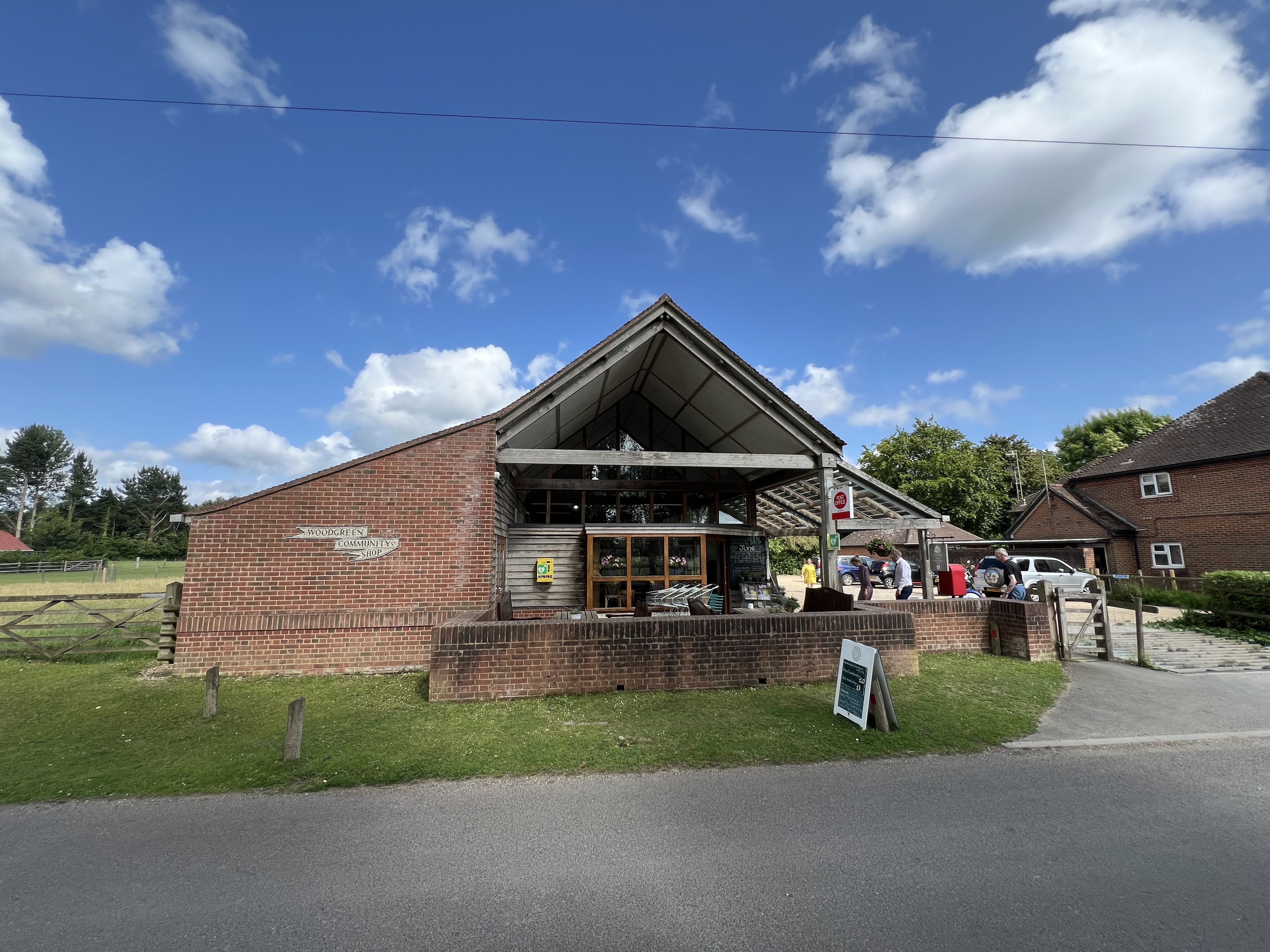slightly overcast early afternoon the sun gently shines on the fields and trees illuminating the roof soffit and reflecting off the recessed glazed gable