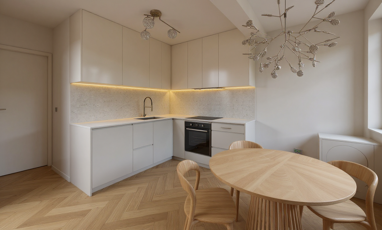 make this realistic stage the kitchen add daylight make the hood curved remove horizontal lines in the middle section of the hood