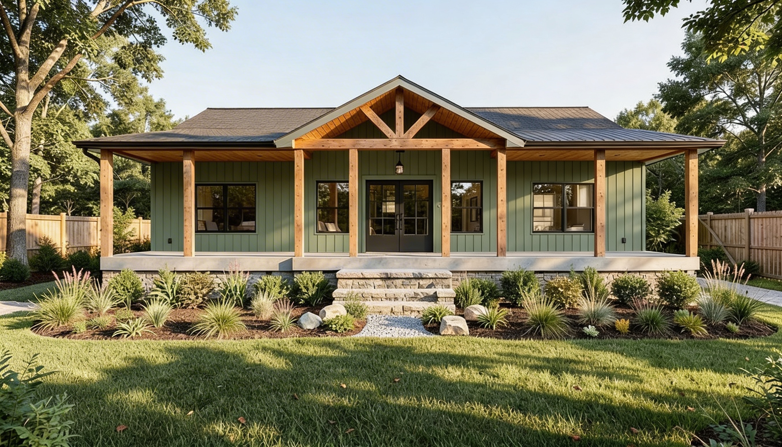 all vertical siding is painted a driftwood color all square siding is dark grey windows are black