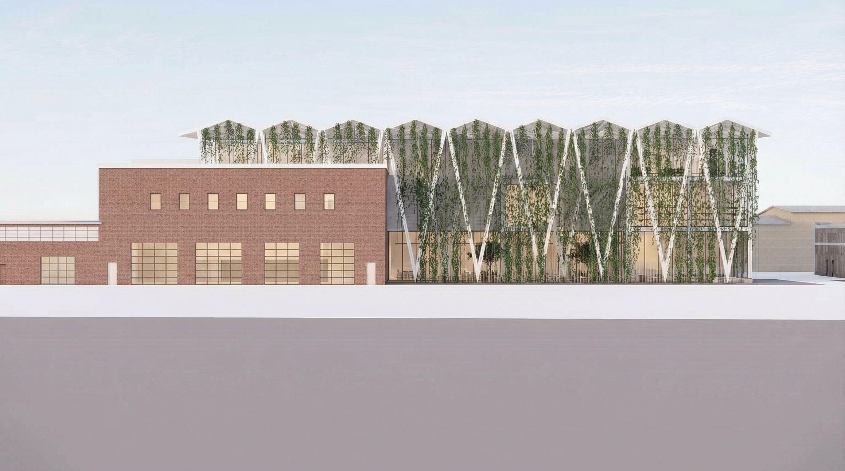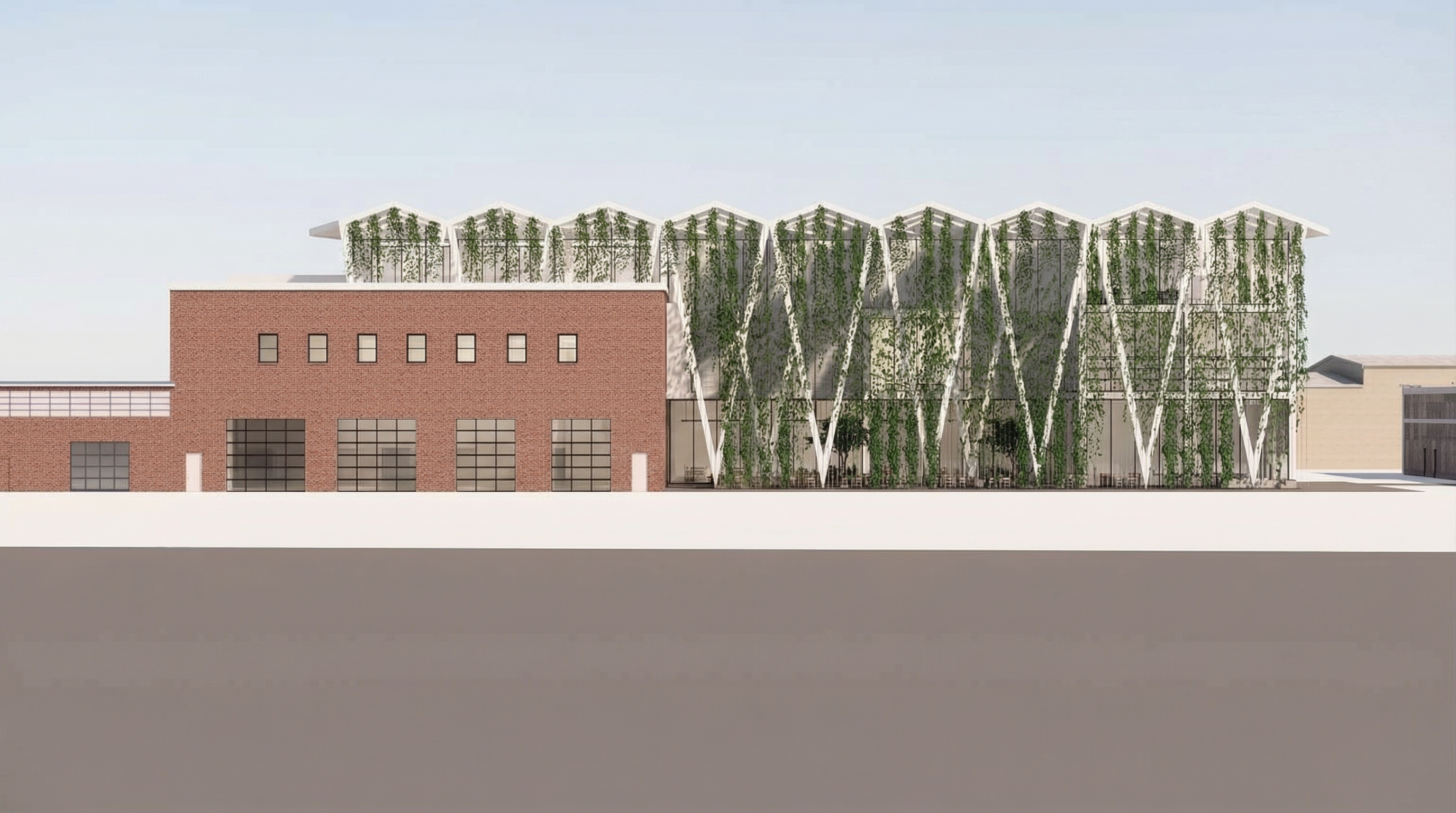 same image and geometry increase vine realism stems thickness variation shadows restore soft interior illumination differentiate sidewalk from street and add subtle contact shadows keep everything bright calm neutral and architectural no haze no new elements