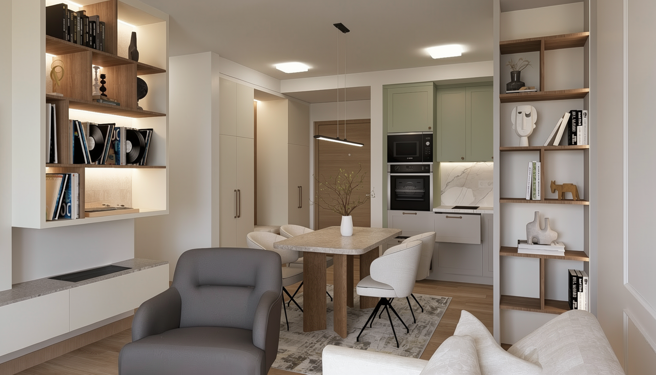 sofa on left hane wadd with artwork above and sideboard opposite
