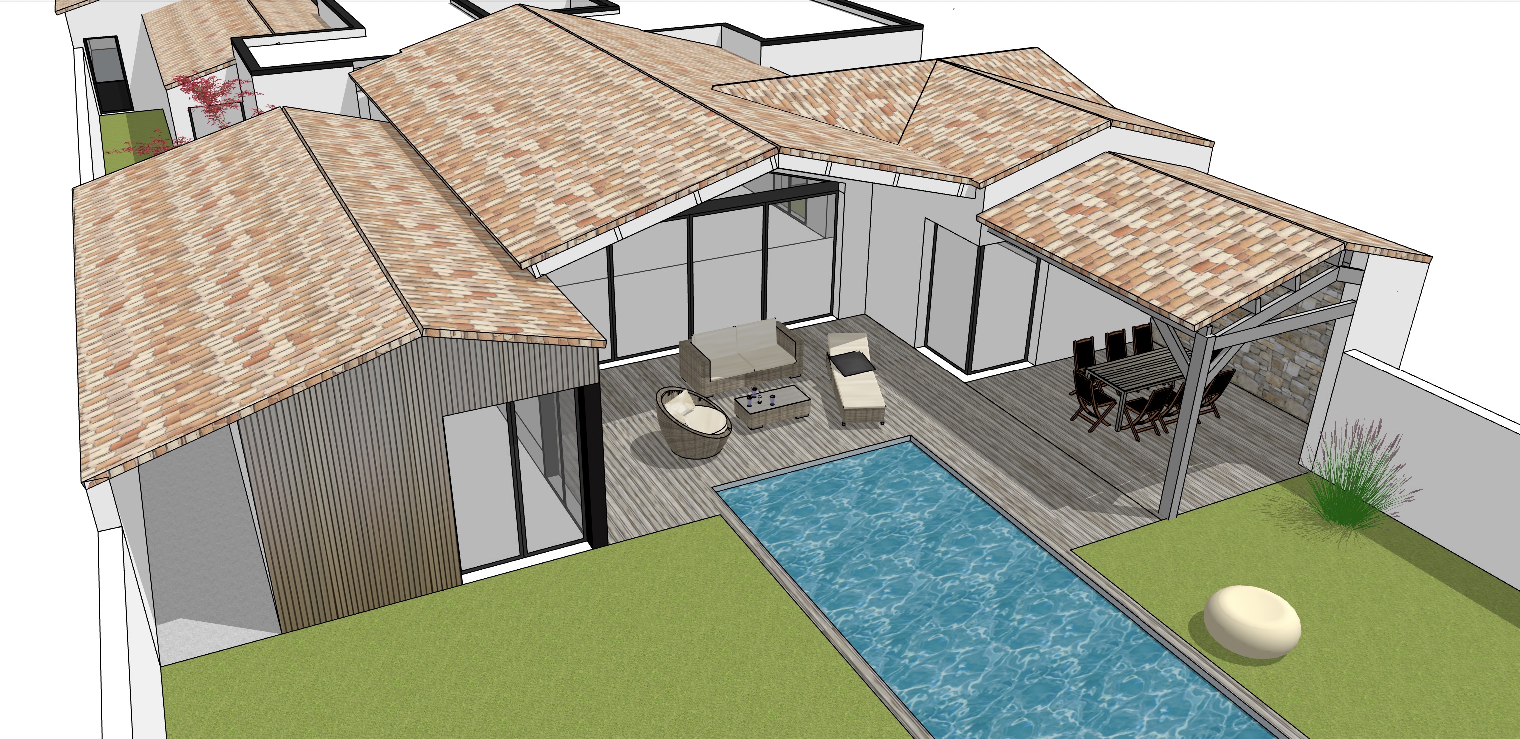 mati res identiques mais plus r alistes pas d ameublement a l int rieur charpente gris clair fen tres noires bardage bois brul noir a gauche conserver les mati res sur le reste