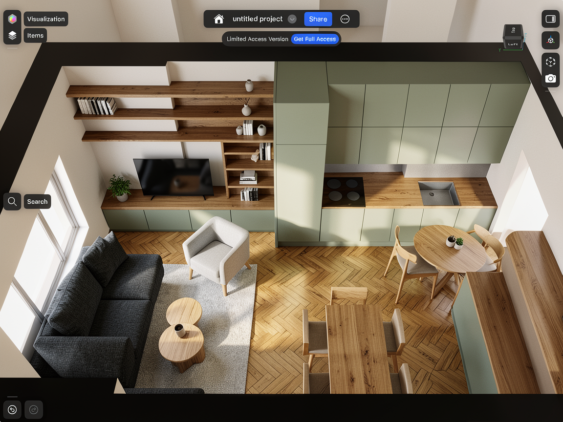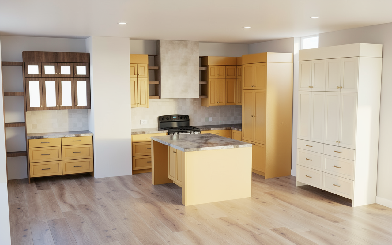 using the same slab material continue the backsplash on the right hand side cabinet behind the glass shelves up to the top of the cabinet