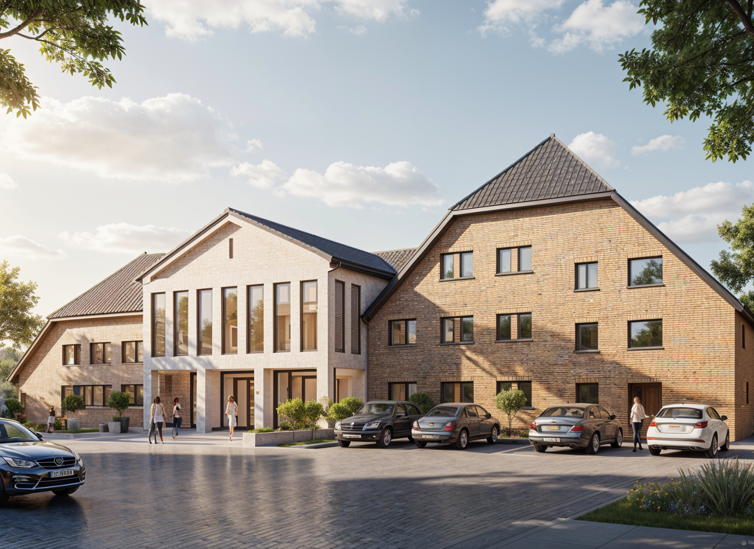 generate a 3d rendering of a modern home interior based on the floor plan use warm neutral tones such as soft beige for the walls and add wooden textures in light oak for the flooring create a cozy atmosphere with natural light streaming through large windows in the salon and sam highlighting a plush sofa in muted blue and a dining table with elegant minimalistic design add indoor plants for a fresh touch and ensure the kitchen is styled with sleek white countertops and stainless steel appliances use gentle lighting to create a warm inviting ambiance throughout the space