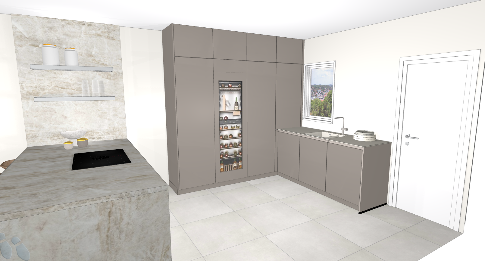 the kitchen fronts are glossy there is lighting under the countertop