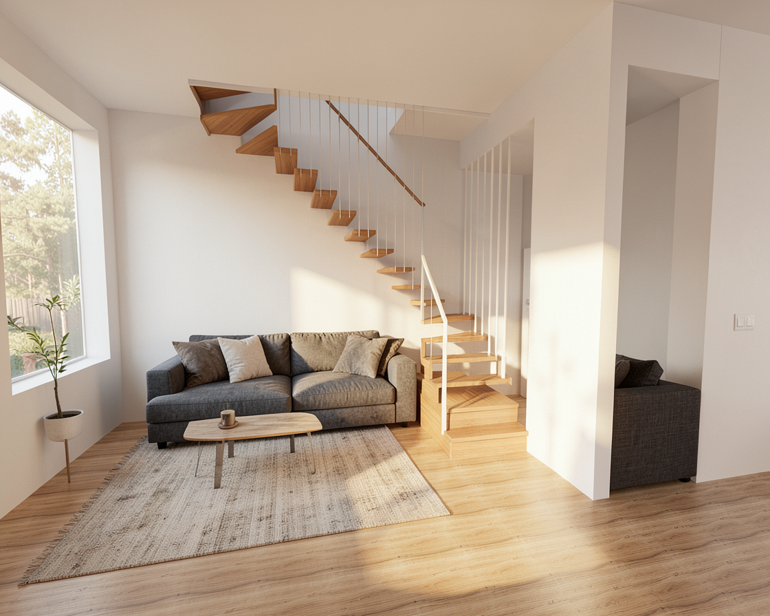 genau dieses rendering berarbeiten fotorealistisches innenraum foto exakt dieselbe perspektive und kameraposition wie das hochgeladene referenzbild 100 identische raumgeometrie exakt gleiche m belanordnung exakt gleiche verlegeart und richtung von parket wie vorlage exakt identische fensterpositionen mit gleichem ausblick auf den z richsee 40 meter tiefer durch die fenster weiches nat rliches tageslicht leicht schr g einfallende sonne durch die grossen fenster geschlossene r ume k nstlich ausleuchten sanfte realistische schatten blickrichtung ist nach s den sonnenlicht kommt von westen realistische materialien echte holztexturen stoff mit leichten gebrauchsspuren hochwertige oberfl chenreflexionen fensterrahmen dunkelbraun kleine gr npflanzen tisch ersetzen mit ovalem tisch hermes m tiers 250x140 cm mit marmor collemandina grigio in braungrau dunkel mit blumen auf dem tisch sechs stylische sessel cabriolet les n cessaires d herm s f nf leuchten von eloa unique lights klarglas in verschiedenen gr ssen und unterschiedlichen h hen parket ruhig und hellgrau alle grauen w nde sind sichtbeton mit modernen leichten vorh ngen in graubeige runde filigrane schwarze einbauspots vor den fensterfronten sehr moderner minimalistischer look aussen offene ungedeckte terrasse nat rliche farbwiedergabe golden hour feeling eine echte frau mit blonden haaren steht rechts im raum die frau ist 170 cm gross und tr gt kleidergr sse 32 attraktiv und sehr schlank sehr schmale taille sehr schlanke beine zierliche schultern nat rliches make up herzliches lachen mit fendi sneakers und mit kleid von fendi das bild muss wie eine professionelle fotografie aussehen es soll ein echtes und reales foto sein canon eos r5 35 mm festbrennweite f 2 8 hyperrealistisch dslr qualit t raw aufnahme 8k aufl sung extrem scharf perfekte tiefensch rfe professionelle architekturfotografie