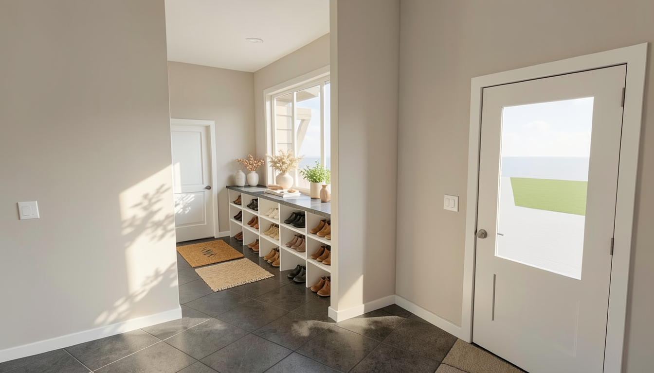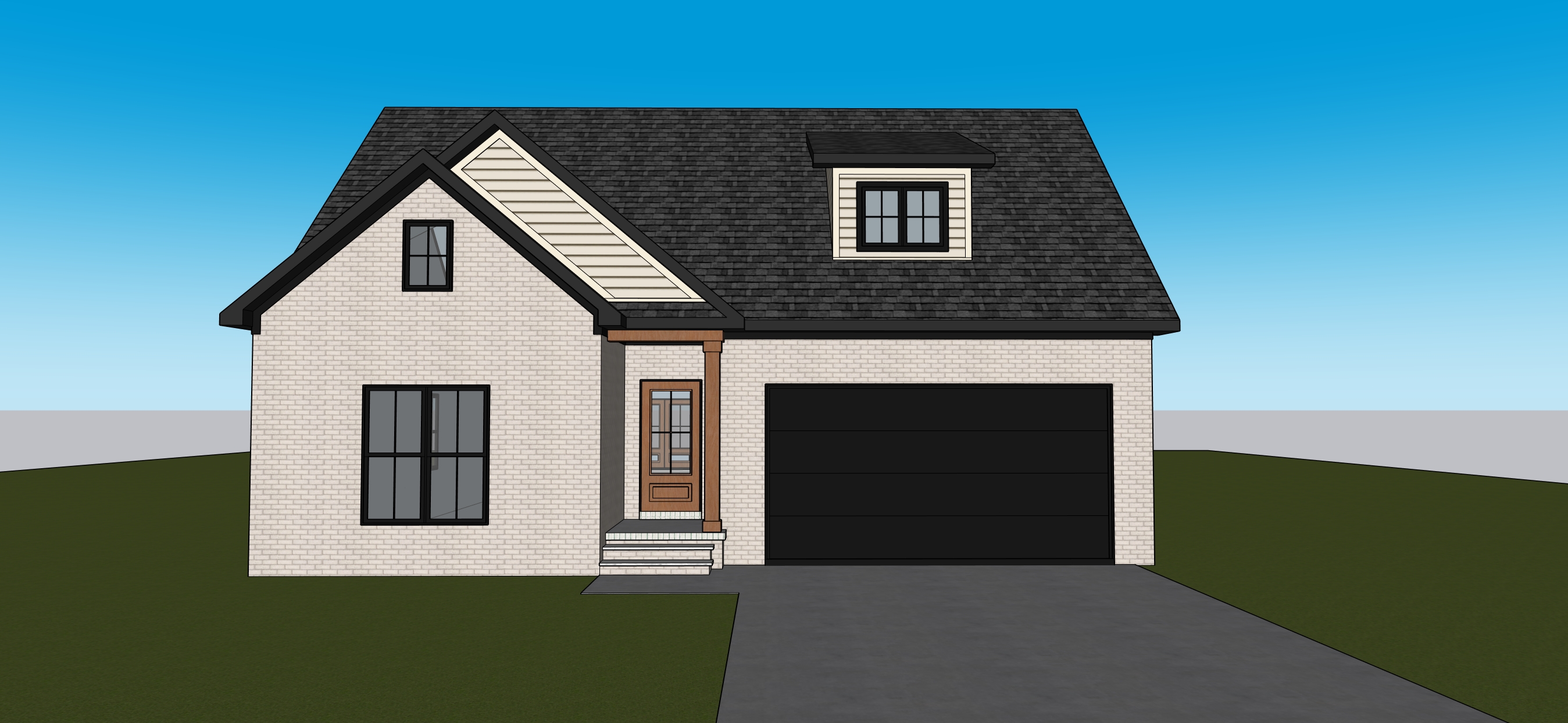 maintain colors trees in background add landscaping mowed yard top level of garage door has windows craftsman style garage door make realistic