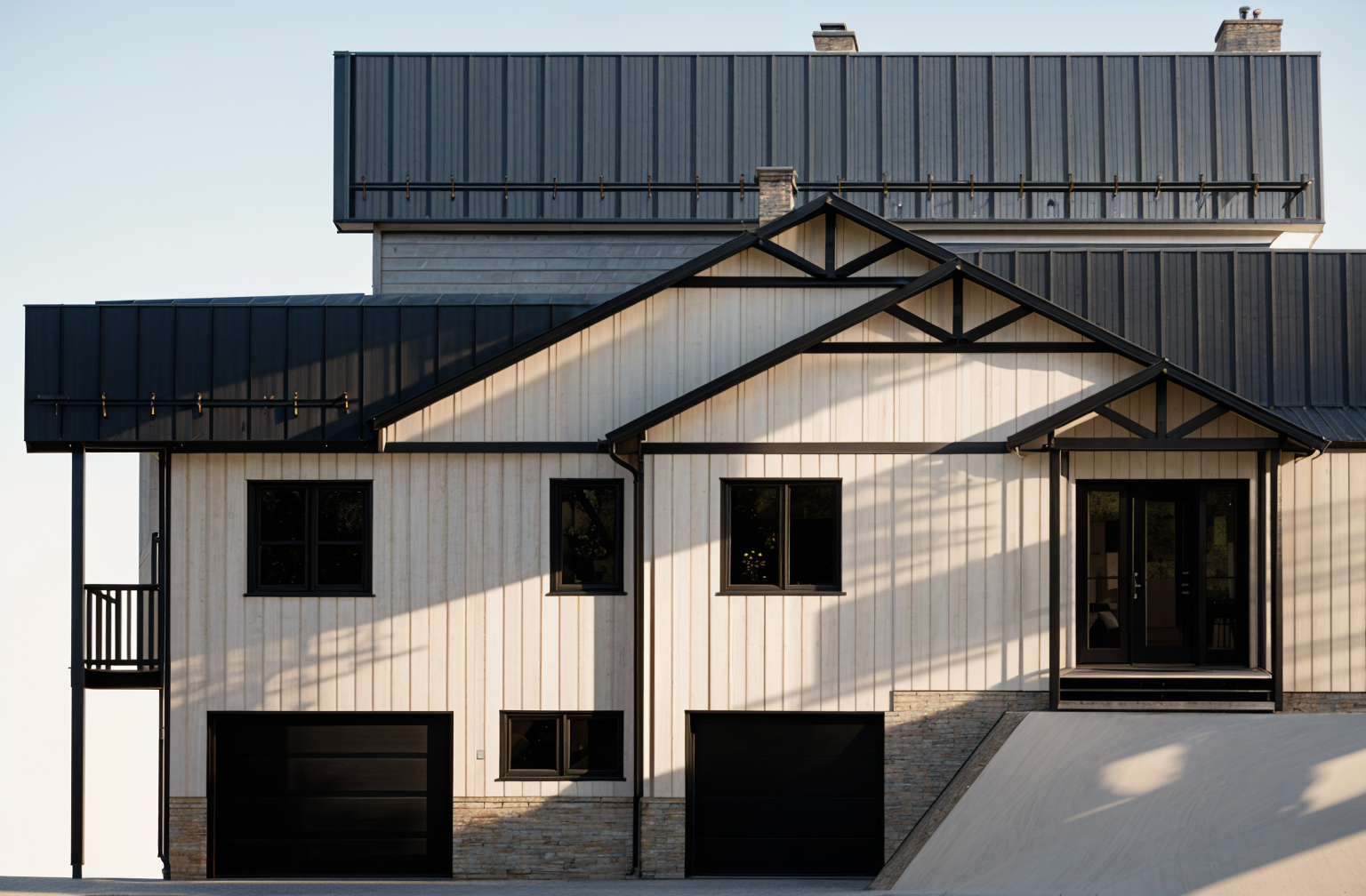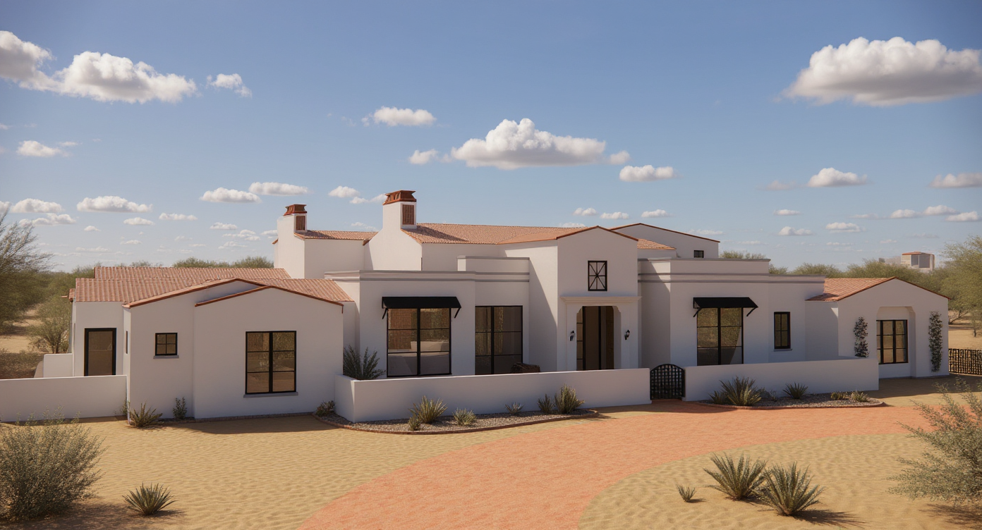 a living room and kitchen wardrobe box deaturated terracotta light finish material of central box carpentery wooden planks flooring french sample oak light concrete parts of panel walls with rought design of iron beams rest of ceiling and walls white plaster sunrise mood morning lighting in the kitchen