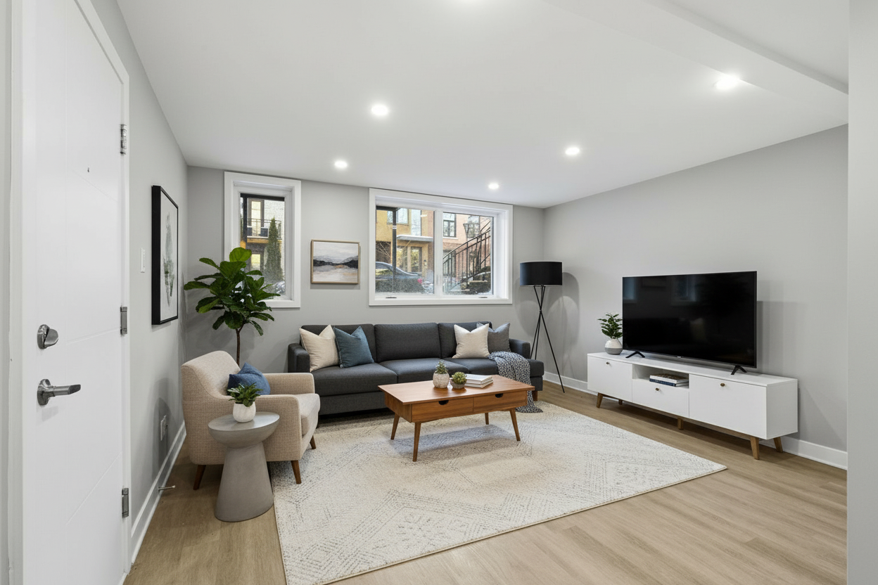 remove all furniture remove table remove chandelier change floor to simple tile change flooring to a simple tile change to black and white scale