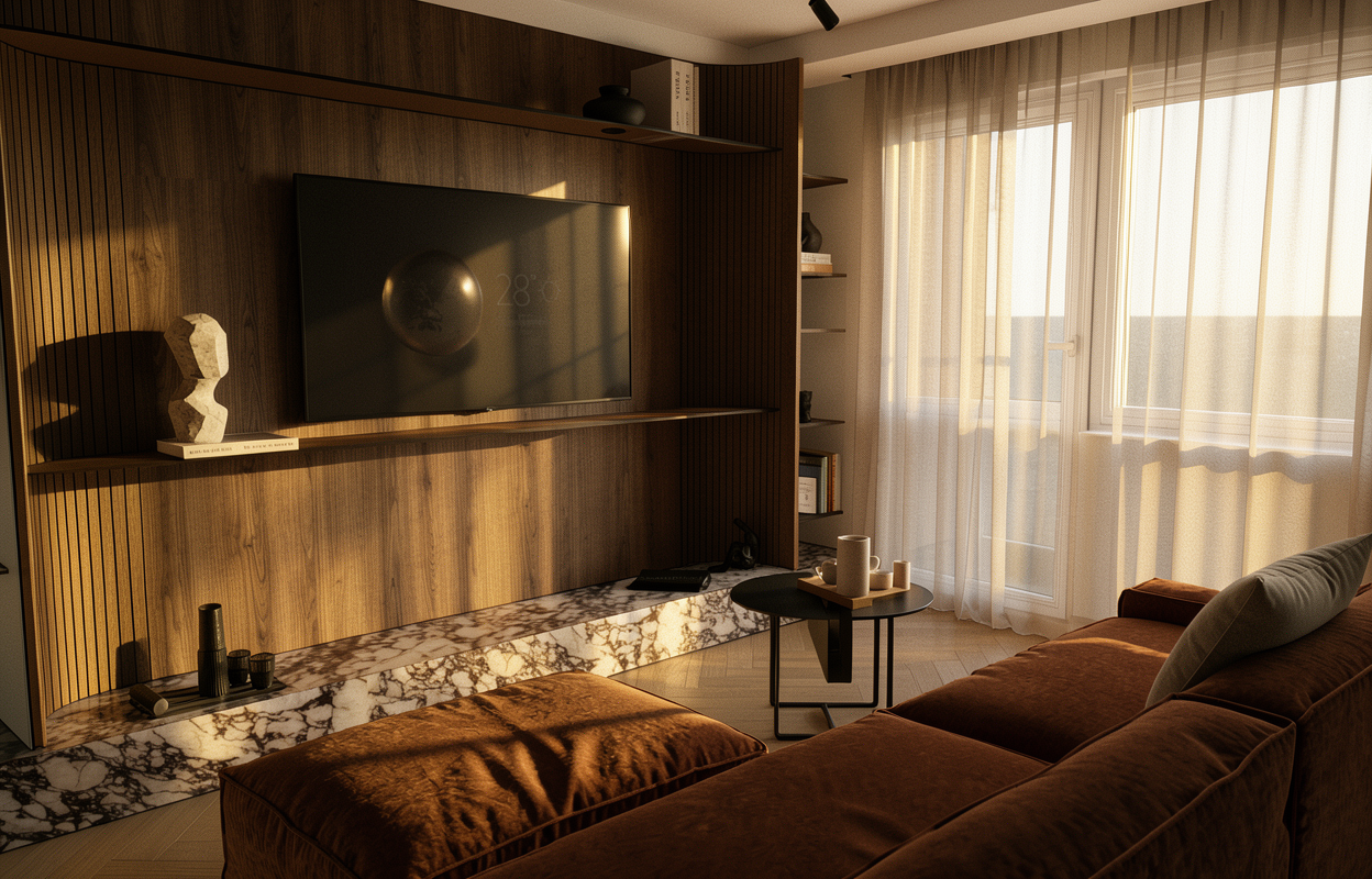 finished render still image enhance only do not redesign preserve exactly all architectural elements furniture openings identical position scale quantity noise reduction maximum denoising in dark areas bedroom night renders accumulate cg noise in shadows preserve grain only where light touches surfaces deep shadow must be clean and dense not noisy material enhancement linen fabric thread count visible weight present softness implied wood warm grain matte no hard specular in bedroom any stone or hard surface cold contrast against soft textiles light intimate artificial one source logic bedside lamp or indirect warm source only existing in render pool of warm light sharp falloff into darkness no overhead light no blue screen light the room is mostly shadow and that is correct highlight rolloff extremely soft warmth without bloom signs of life book open face down on bedside surface bedcover pulled back on one side weight of a body now absent glass of water nothing more mood the last quiet moment of the day total stillness the room protects its inhabitant color deep amber in light zone near black in shadow lifted blacks only enough for material to read zero saturation push colors are what they are in candlelight portfolio grade cinematic intimacy peter zumthor atmosphere material presence in near darkness
