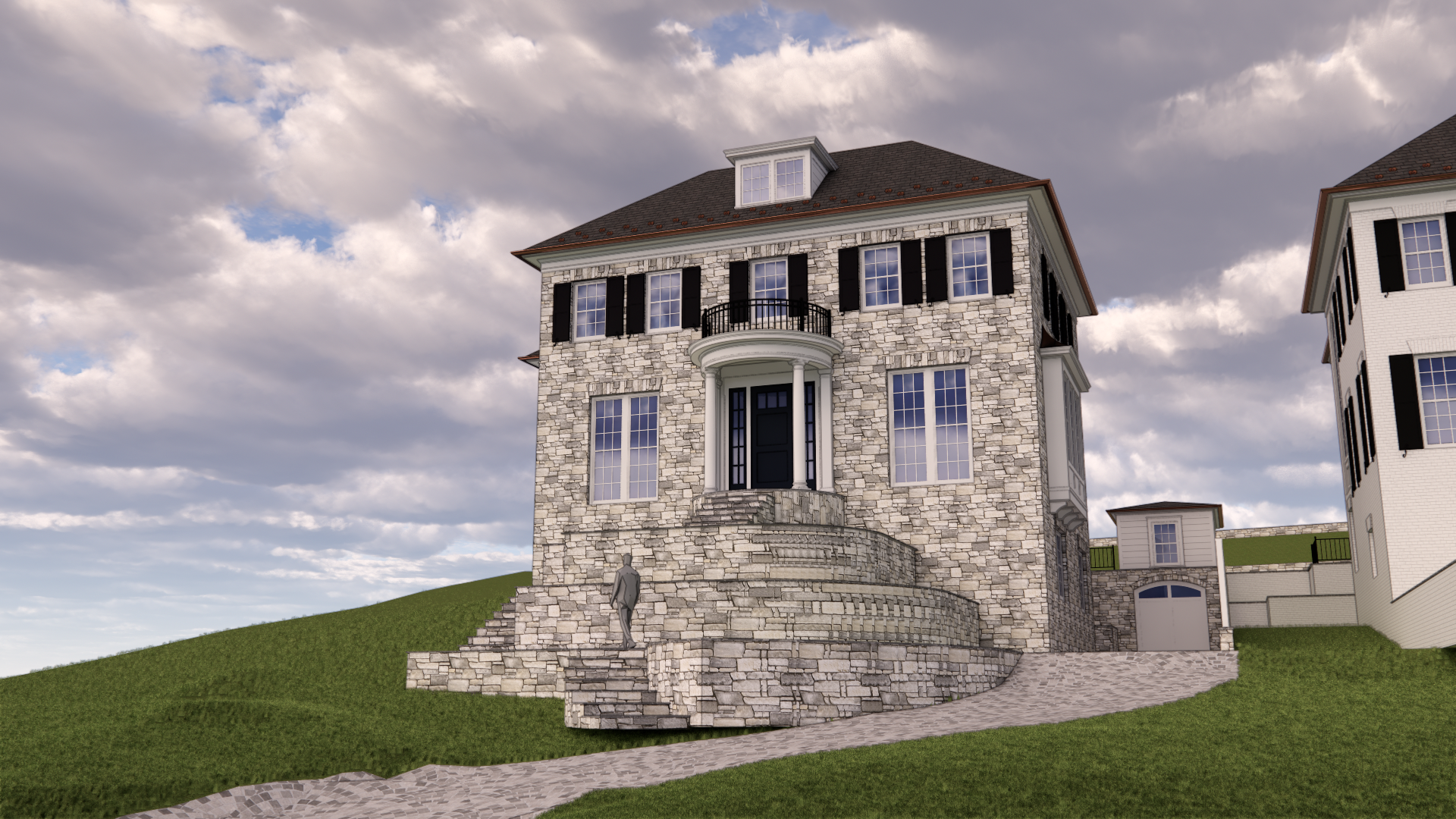 render this to make it look realistic add context like bushes trees better n lighting