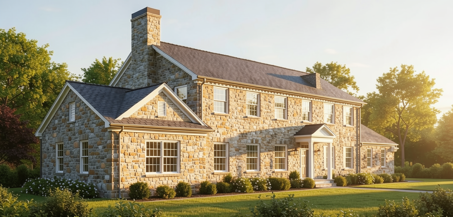 spanish mediterranean style exterior renovation of an existing stucco home in colorado maintain original structure but elevate design with refined architectural detailing add warm natural materials including stained wood beams thick wood posts and wood gable accents integrate black or dark bronze metal railings with vertical pickets between wood posts introduce stone veneer elements on retaining walls and a feature outdoor fireplace upgrade garage doors to wood look composite with clean modern trim add small metal awnings above doors and windows emphasize depth shadow lines and craftsmanship keep stucco light and warm with contrast from dark wood and metal landscaping natural and slightly rugged mountain modern meets mediterranean