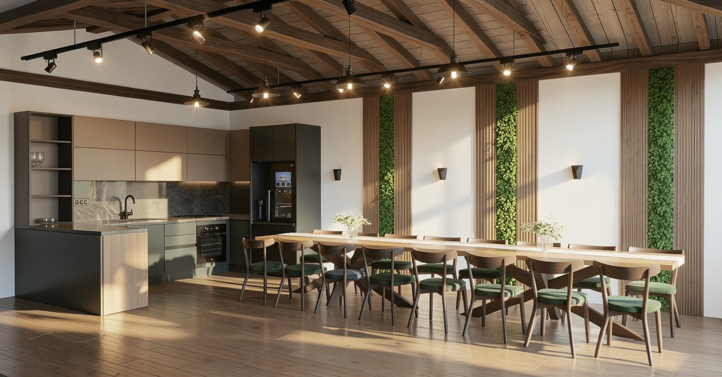 modern qatari heritage caf interior keep existing coffee bar exactly as is preserve blue subway tile counter preserve black metal arch frame preserve terrazzo round tables and wooden woven chairs preserve patterned geometric floor tiles add only subtle decor upgrades warm ambient lighting hanging small arabic brass lanterns elegant maroon and sand cushions on chairs small traditional qatari pottery on tables framed minimalist qatari heritage art on side columns subtle sadu textile accents indoor date palm plant in corner refined cozy atmosphere premium caf styling realistic materials architectural visualization ultra detailed photorealistic soft cinematic light
