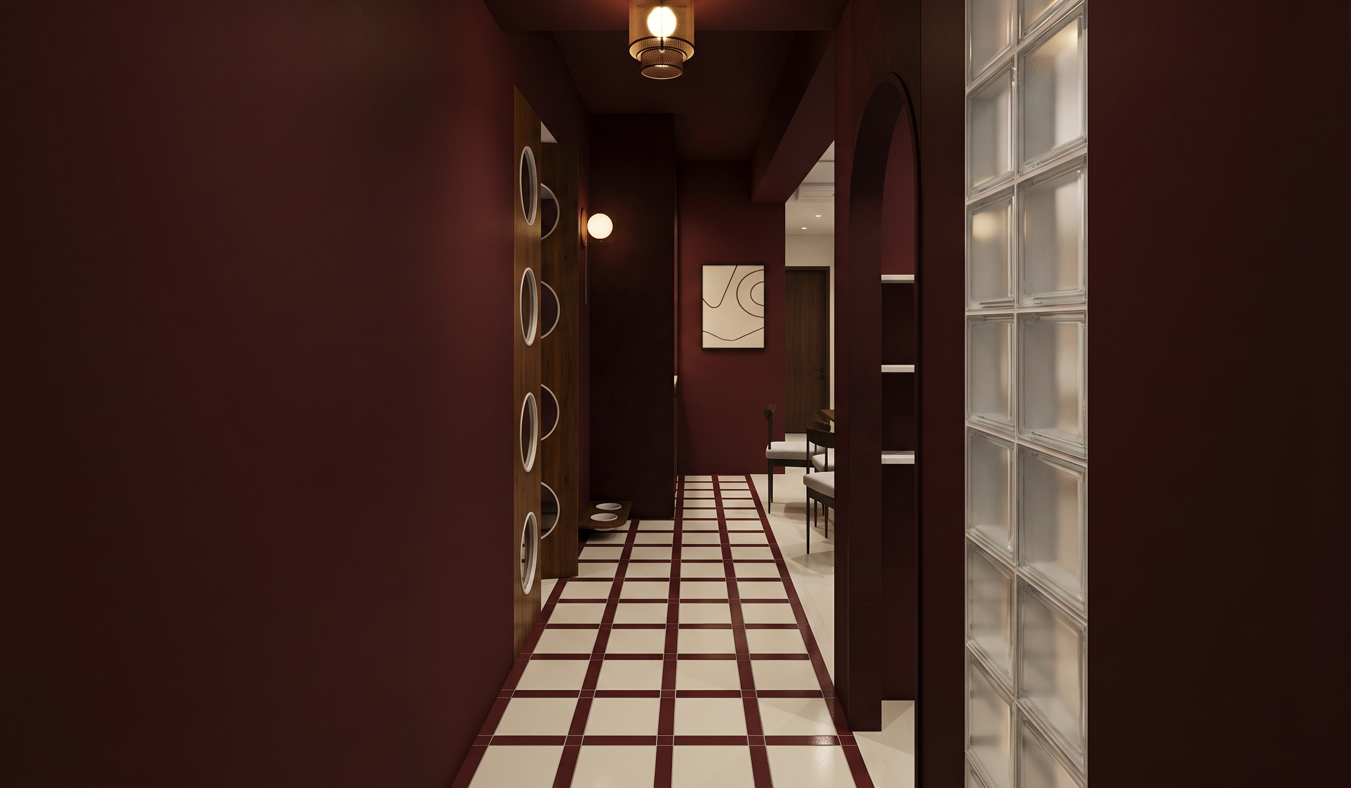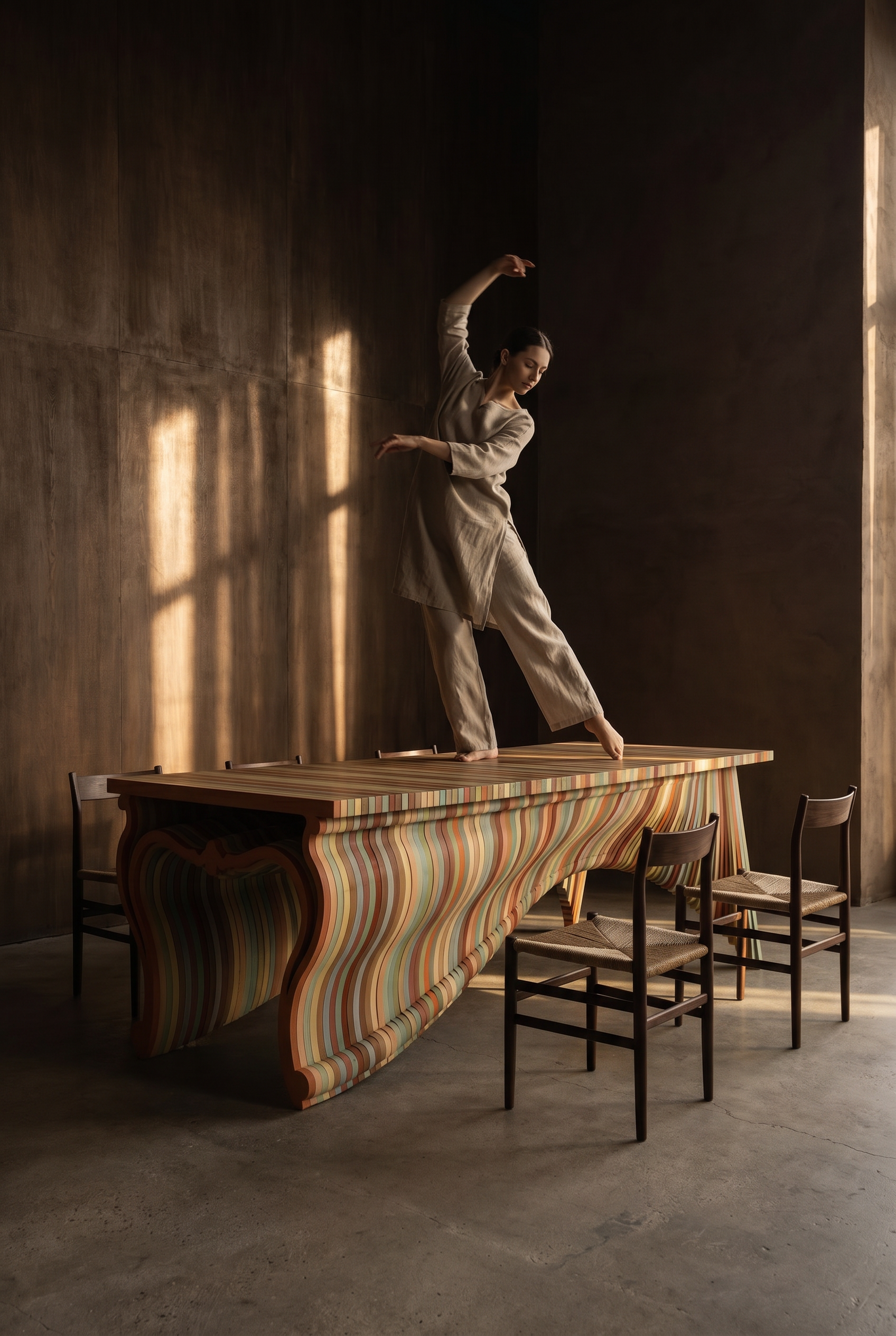 mantieni oggetti e colori immagine fai entrare luce solare dalla finestra a destra accendi luci legno rovere chiaro come texture tessuto sedia chiaro boucl come immagine la lampada scultura a parete ha dei microled ed ottone