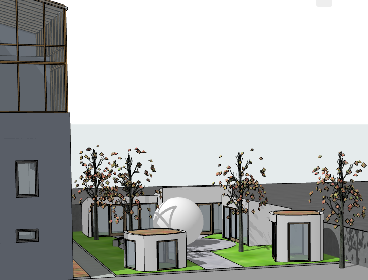 make a realist photo make the houses colourful and inspired by the artist l na rut that makes the sculptures kr li if possible swap the circel globe in the middle to a sculpter from the artist