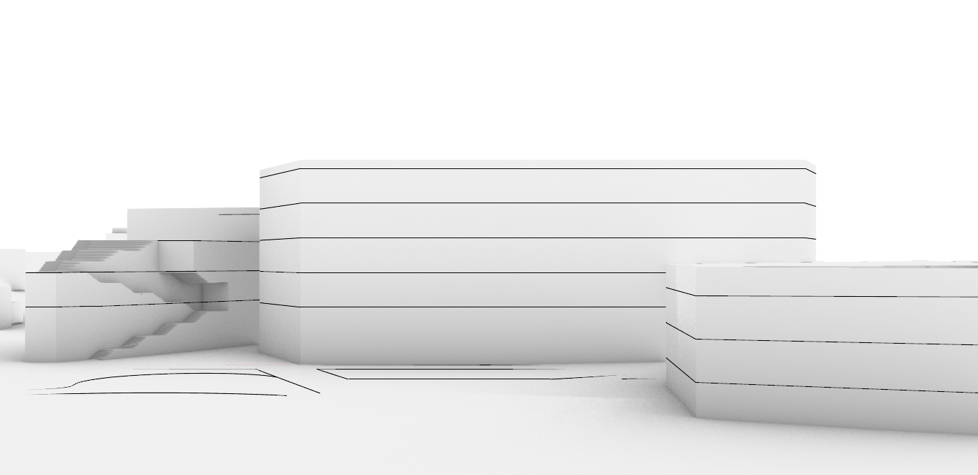 follow the exact building and add a curtain wall of glass except around the stairs where it needs to be a concrete area with a mix of glass on the top floor also add some steel areas on the curtain walls