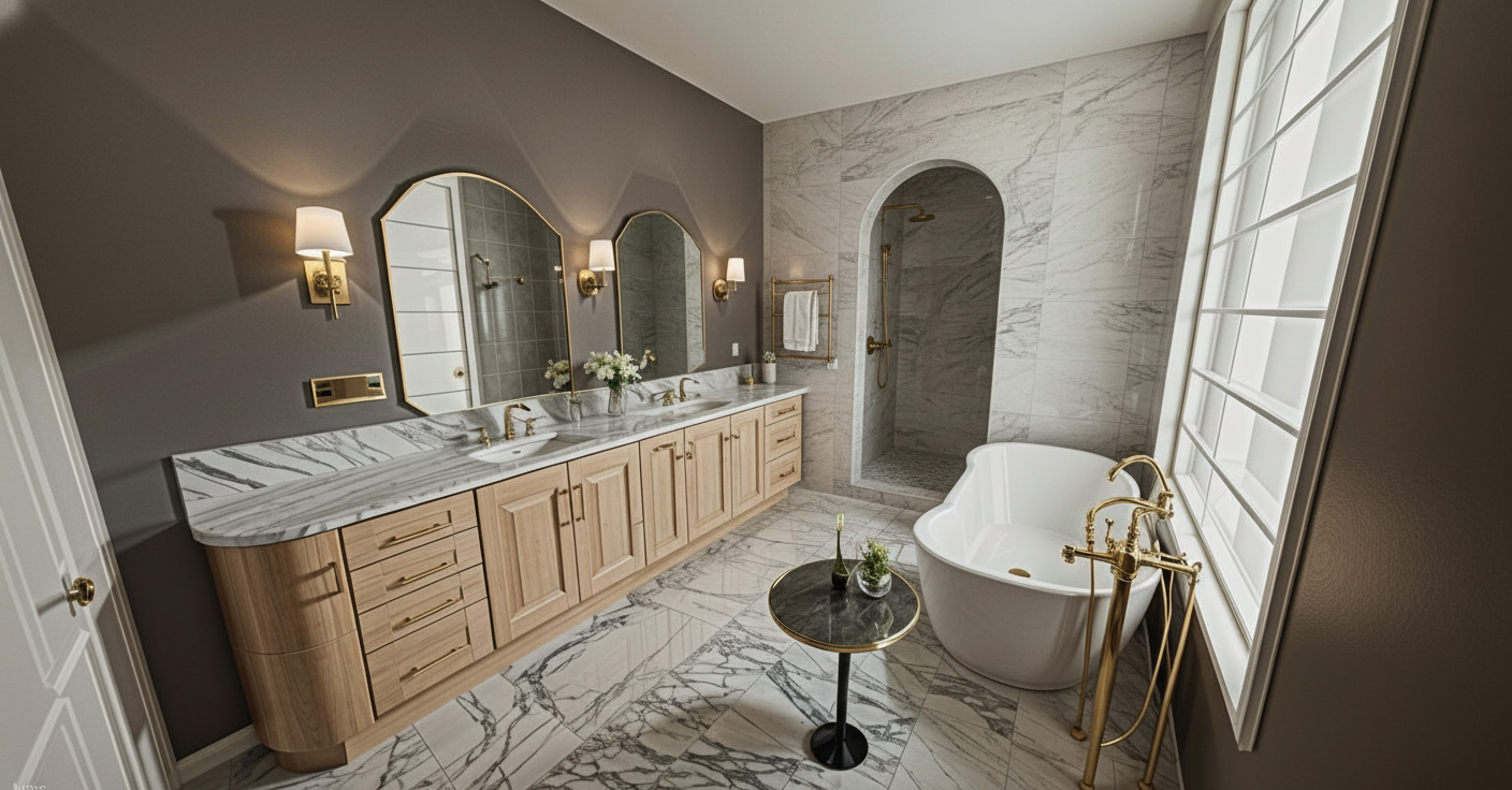 add a panel of floor to ceiling glass to the right of the shower archway