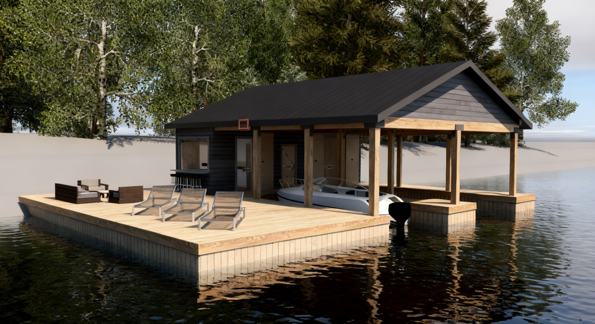 photorealistic garden room anthracyte composite cladding black composite door trims and fascia realistic shadowing modern timeless reflections on glass make the room with a flat rood no lean to the anthracite to be darker shadw of grey the window on the porch to only be small for a 400x400 bathroom paint the posts black log storage on the back wall no large window beside the door only put a small window here no window on the log storage section non lean to structure flat unit only