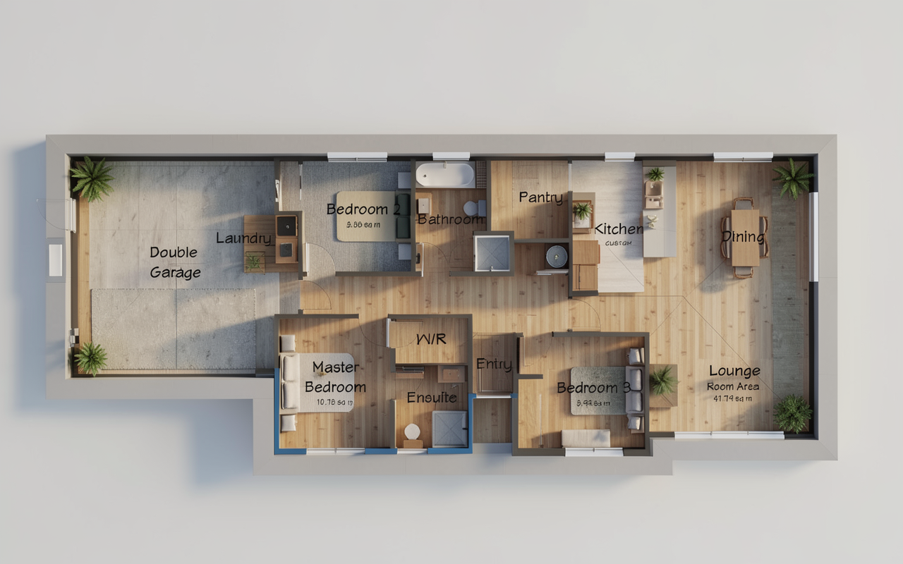 convert this floor plan into a realistic isometric 3d view of a full house show the space from an elevated angle with furniture walls and details visible use the same furniture as shows on the plan do not change the orientation of the floorplan
