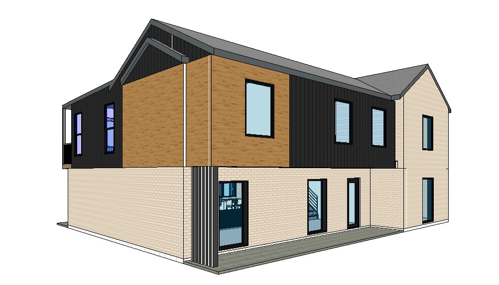 charcoal board and batten horizontal cedar planks white wash brick hedges in front of porch