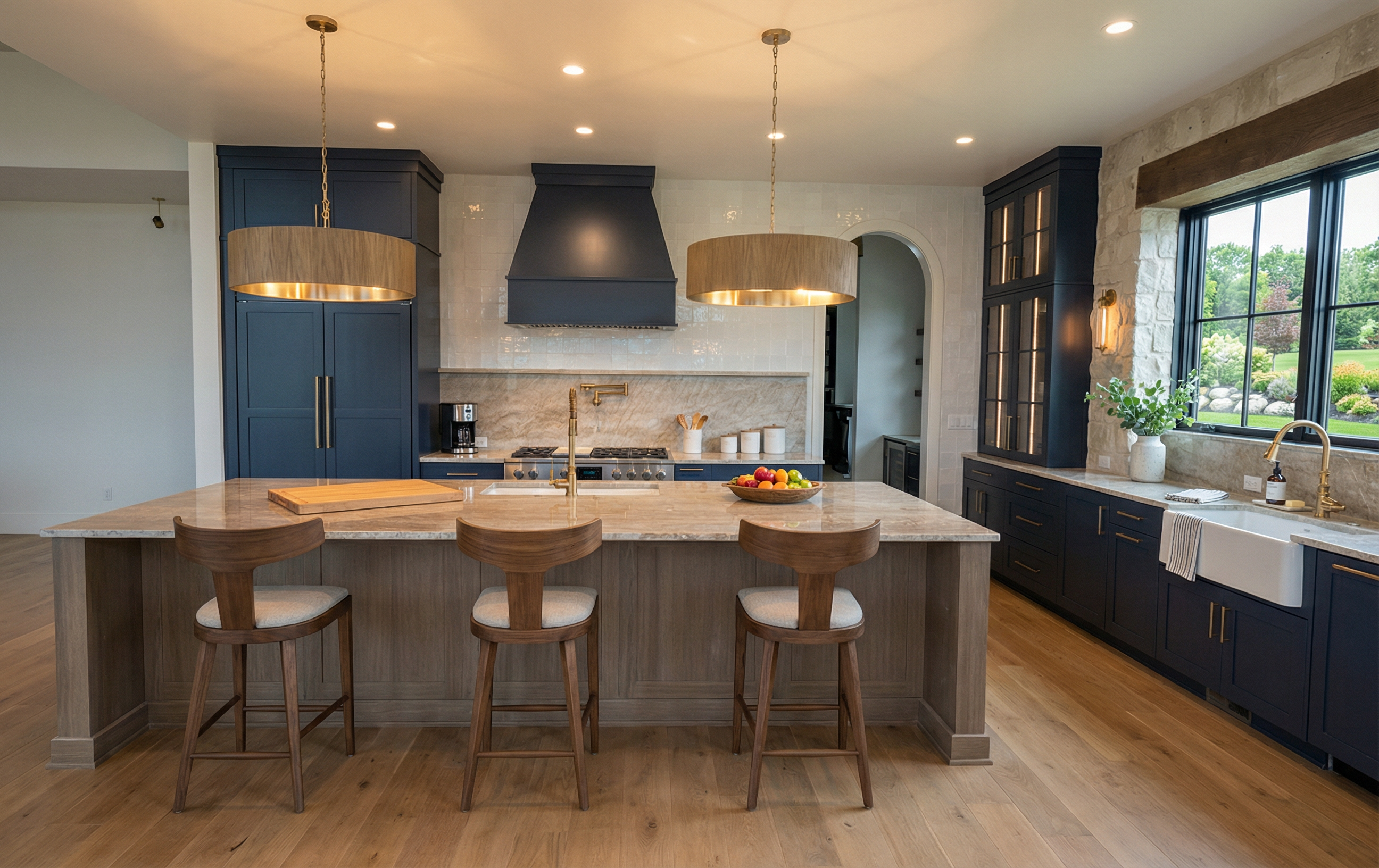 enhance the current materials and create a photorealistic atmospheric depth render the scene in hyper realistic architectural quality enriching the environment and highly detailed textures bright sunny day with balanced natural lighting clear visibility and soft shadows ideal for high end for architectural rendering maintain colors and the roof is a metal seam roof