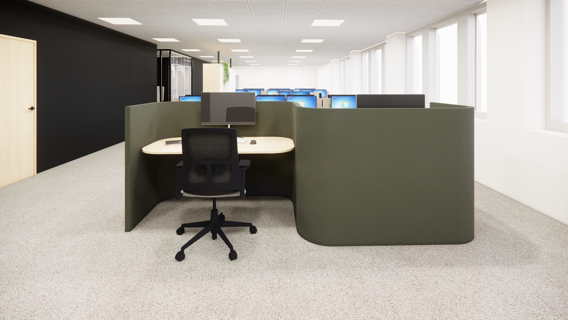 create a stunning 3d render of a modern office layout add some dynamic young people