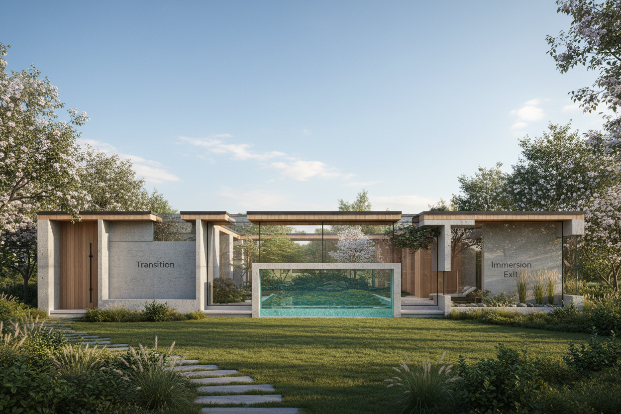 louis sullivan interior shot keep perspective as is event room no furniture windows on the far left and far right walls featuring an elegant stage with 3 steps atmospheric backlight the room lighted with elegant artificial light all finishes in neutral tones simliar to white alabaster architecture